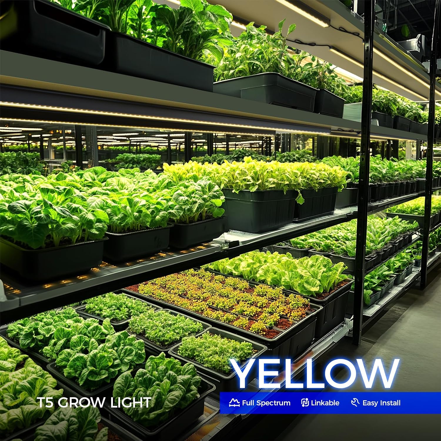 Barrina T5 Grow Lights for Indoor Plants, 4FT 160W (8 X 20W) Plant Grow Lights Indoor with Magnetic Bar, Linkable Plant Growing Lamps with Black Cover, Plug and Play, Yellow, 8 Packs