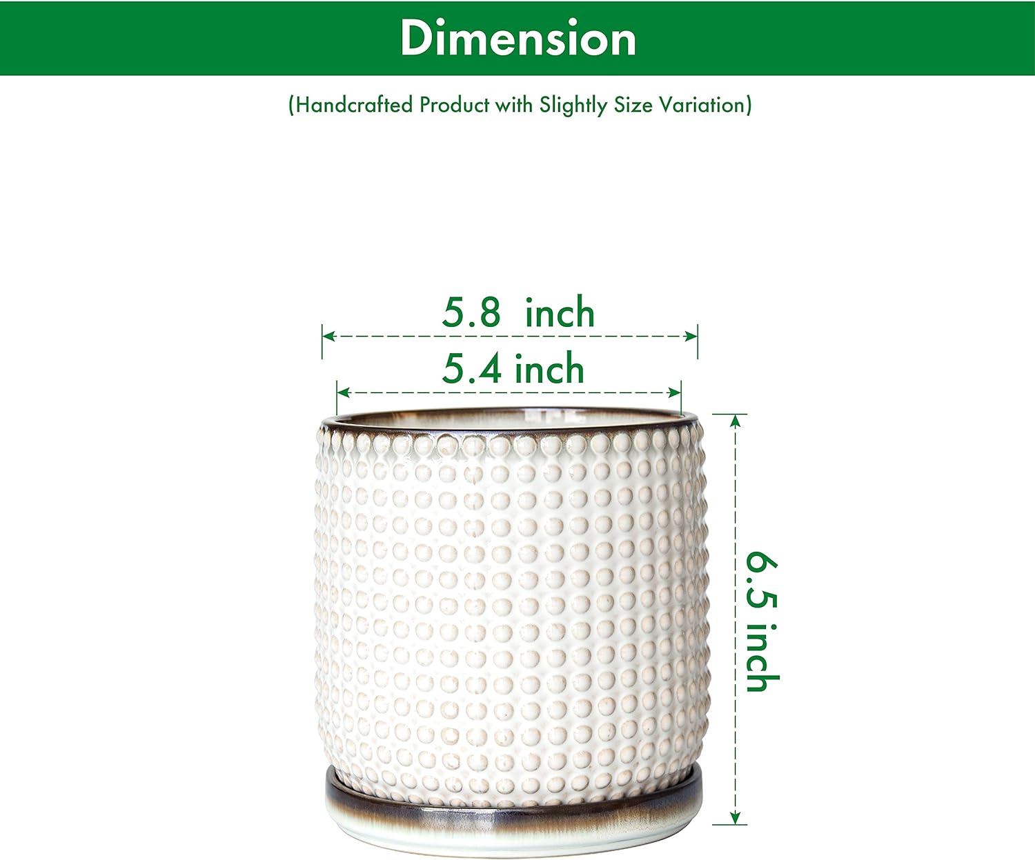 D'vine Dev Set of 2 Ceramic Plants Pots, 6 Inch Beaded Stoneware Flower Pot for Plants with Drainage Hole and Saucer, Smoked White, 27-E-X-1