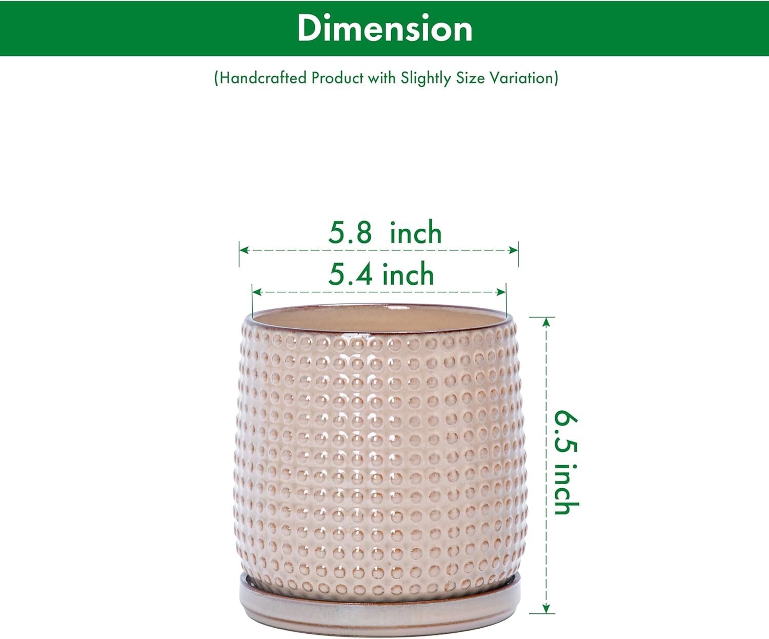 - Size & Dimension: 5.8" in outside diameter (OD), 5.4" in inside diameter (ID), 6.5" in height (H).
