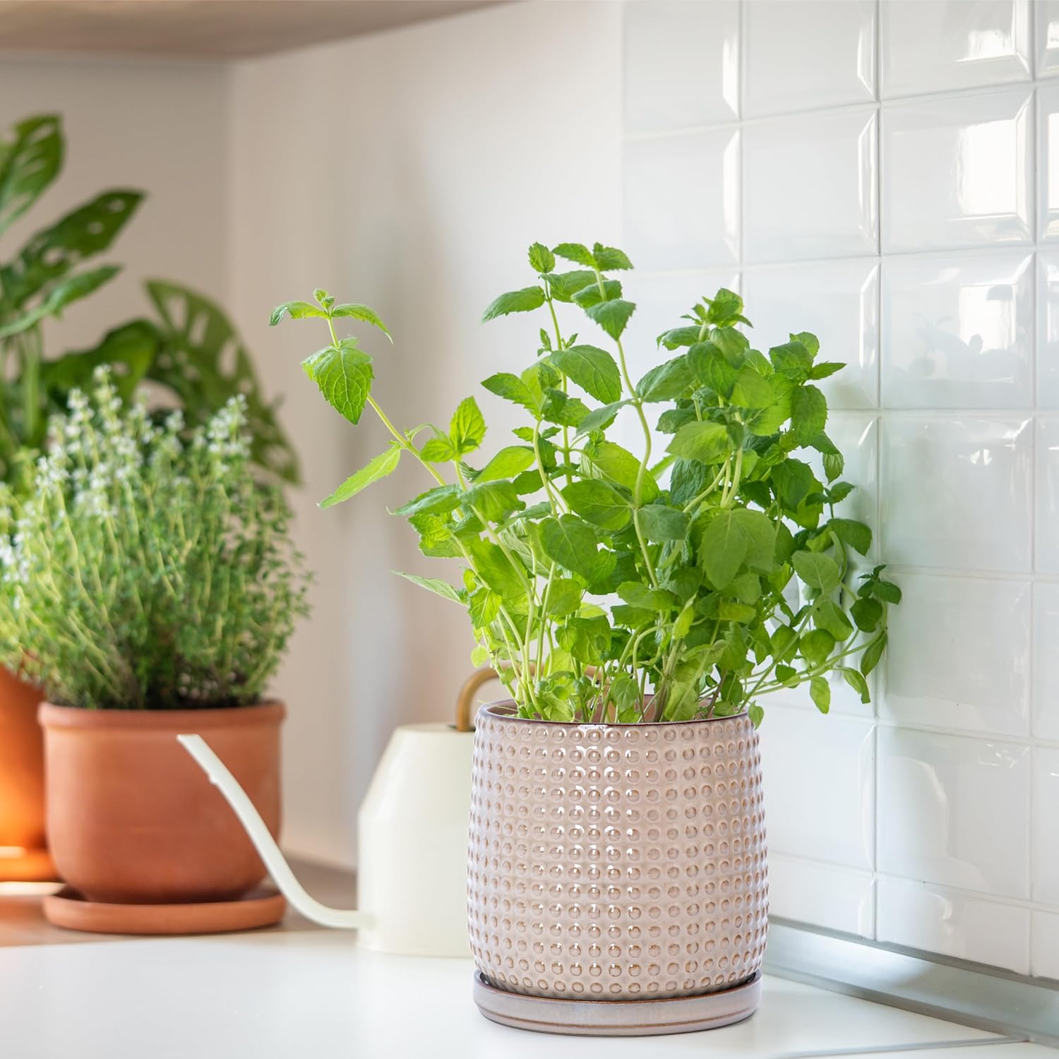 - Included: Each pot comes with drainage hole and fitting detachable drip tray.