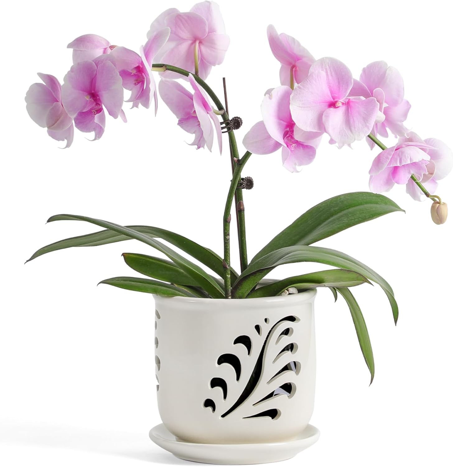 - Superior Orchid Care - The ceramic orchid planter has a drainage hole at the bottom that allows for adequate drainage and promotes flow, making over watering difficult. The drip tray is completely separate for easier filling, draining and cleaning, promoting a healthy root environment for the orchid