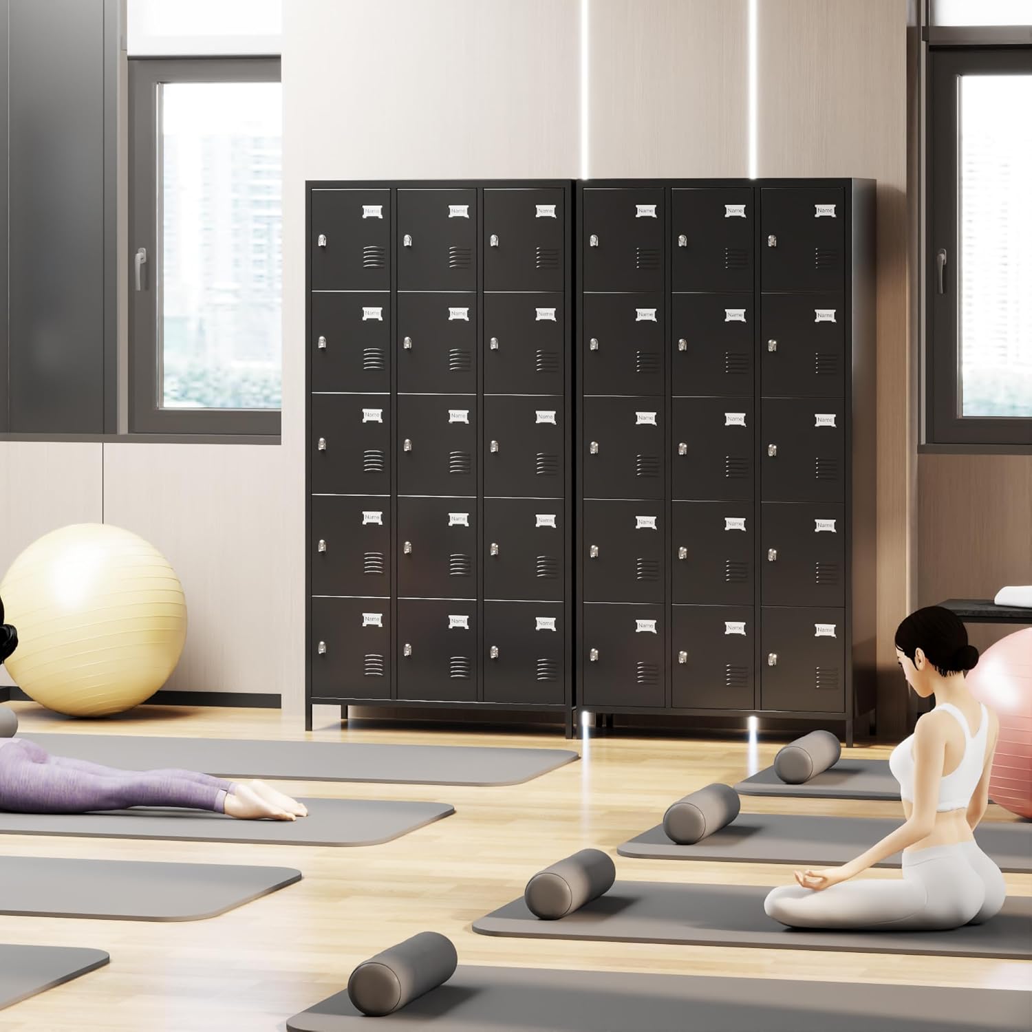 METAN Metal Locker for School Office Gym Bedroom, 15 Doors Black Steel Storage Locker Cabinet for Employees, Industrial Storage Locker, Assembly Required (15 Door-Black)