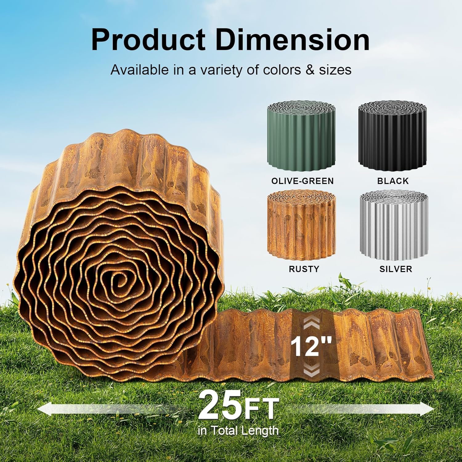 Land Guard Corrugated Garden Edging Border,12" x 25' Landscape Paver Edging, Tall Landscape Edging, Fence for Garden, Flower Bed, Lawn and Landscape Edging (Rusty)