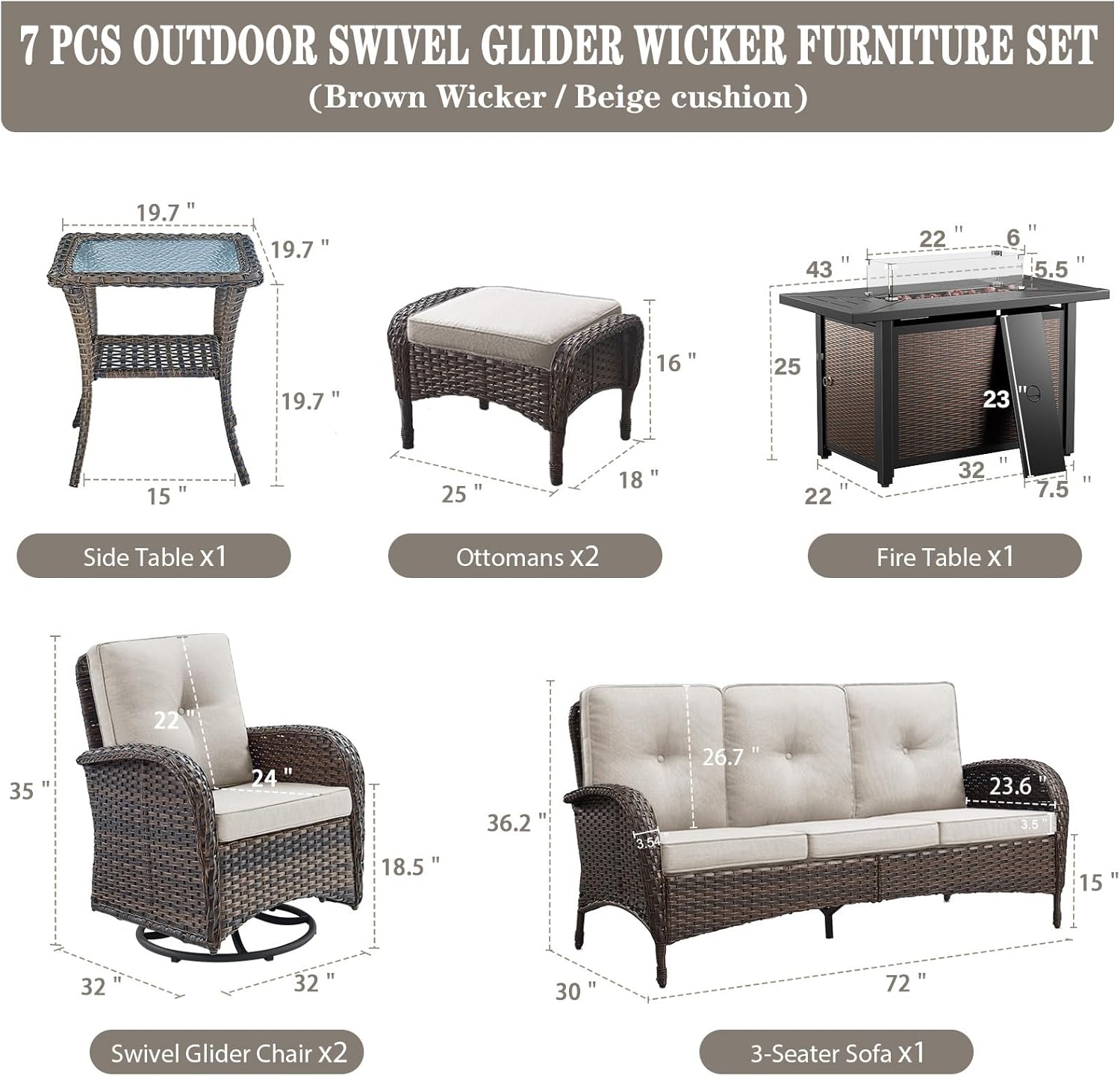 - Size : 8 PCS - Swivel Glider & Sofa & Fire Table