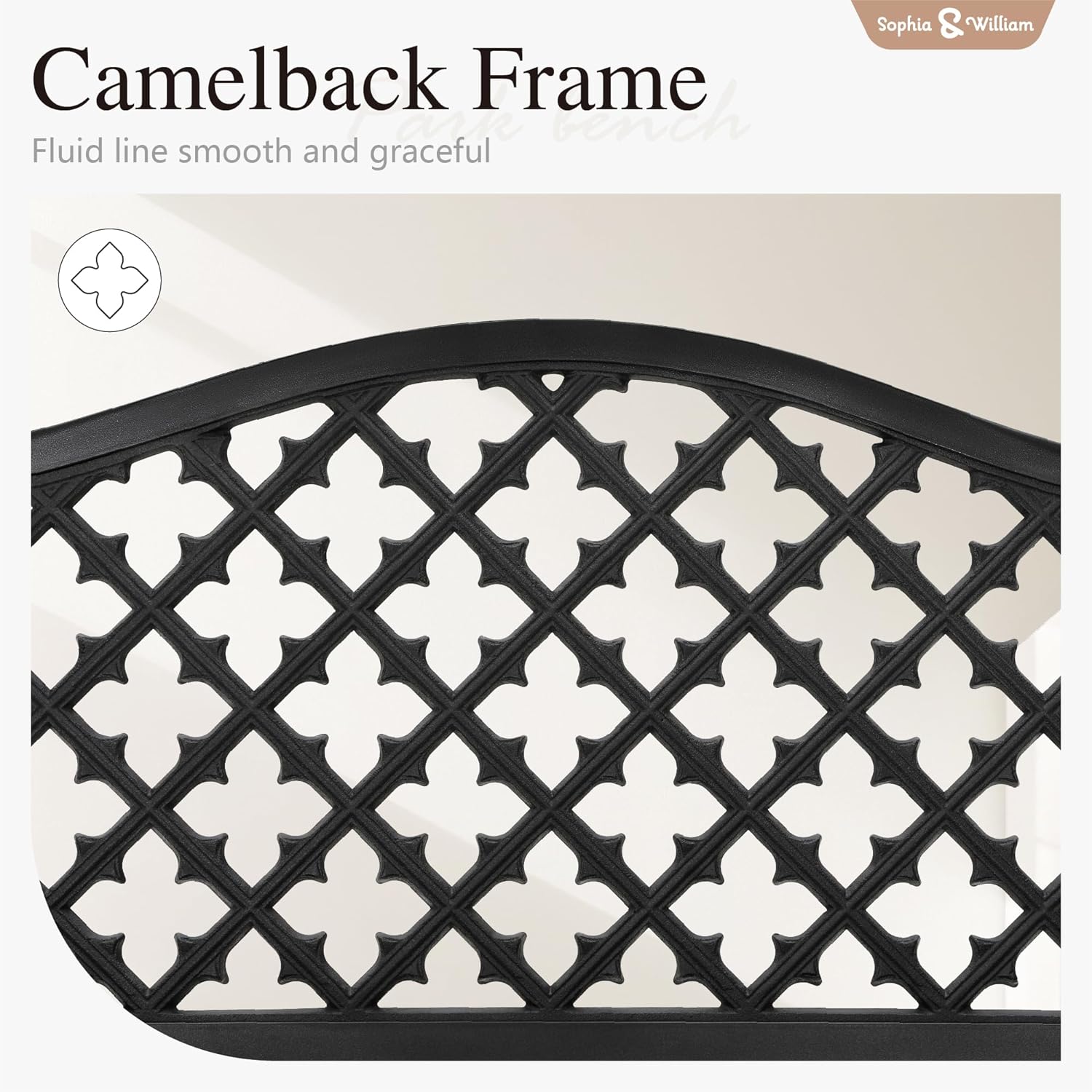 - Elegant Details: The beautiful geometric floral patterns are distributed on the backrest, which not only makes the whole metal garden bench look regal and elegant, but also allows air to flow. And can better match various scenes and other furniture decoration. Slatted seat allows for easy cleaning and optimal support