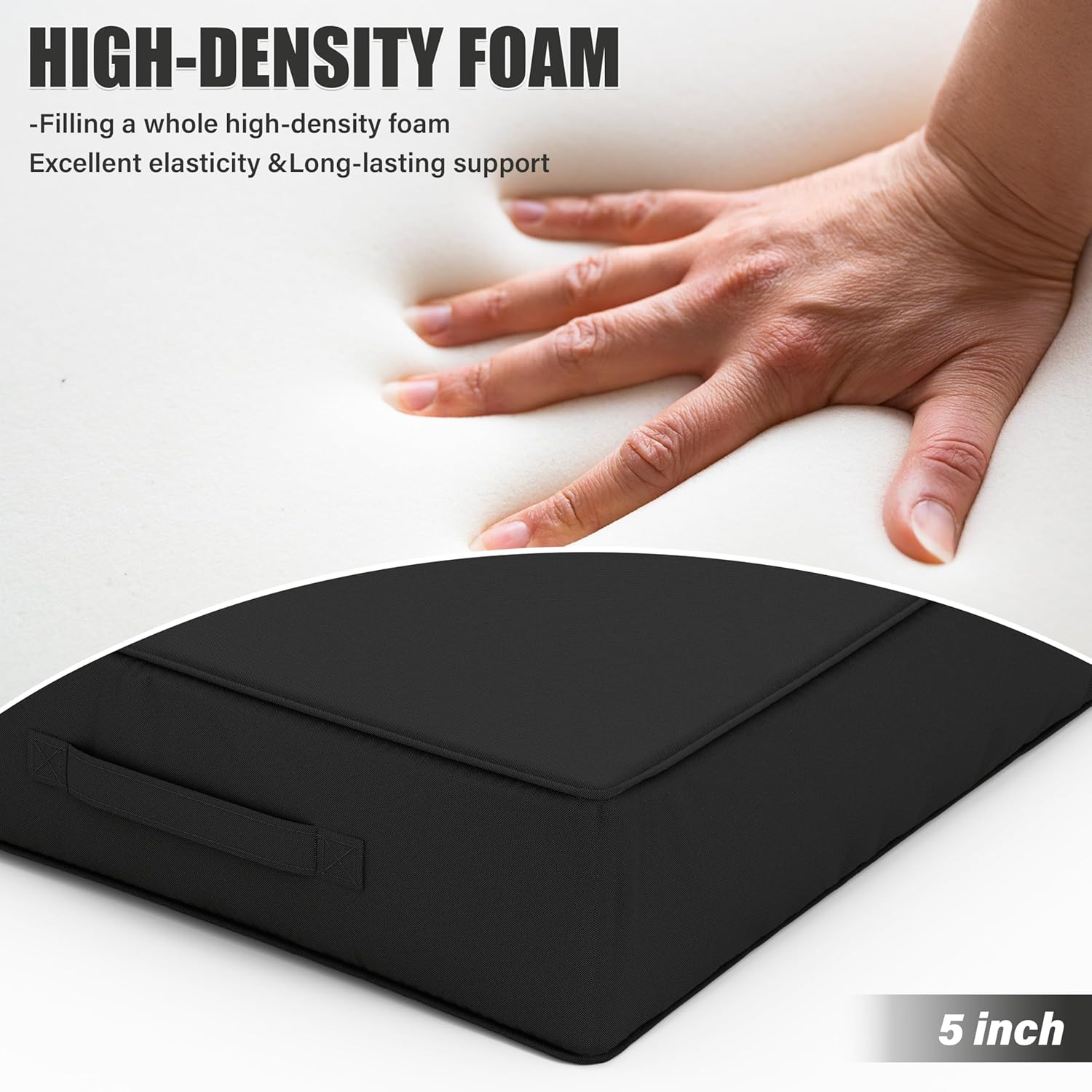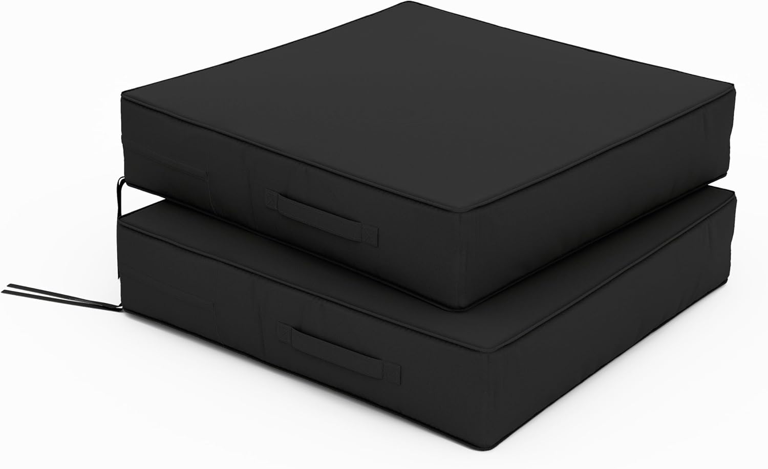 Patio Chair Cushions 24 X 24 X 5 Inch Waterproof Outdoor Seat Cushions for Patio Furniture, Outdoor Sofa Couch Pads with Ties & Handle, Set of 2, Black