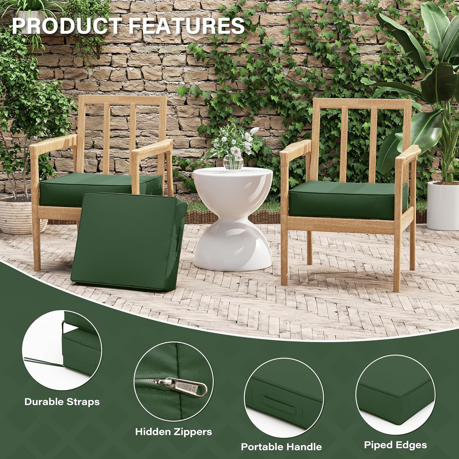 - π WEATHERPROOF - The Patio Furniture Chair Cushion is made of double-layer waterproof coated fabric that is waterproof on all sides, keeping the rain out and keeping the foam dry and tidy. Even in bad weather, it looks brand new with just a little care from you!