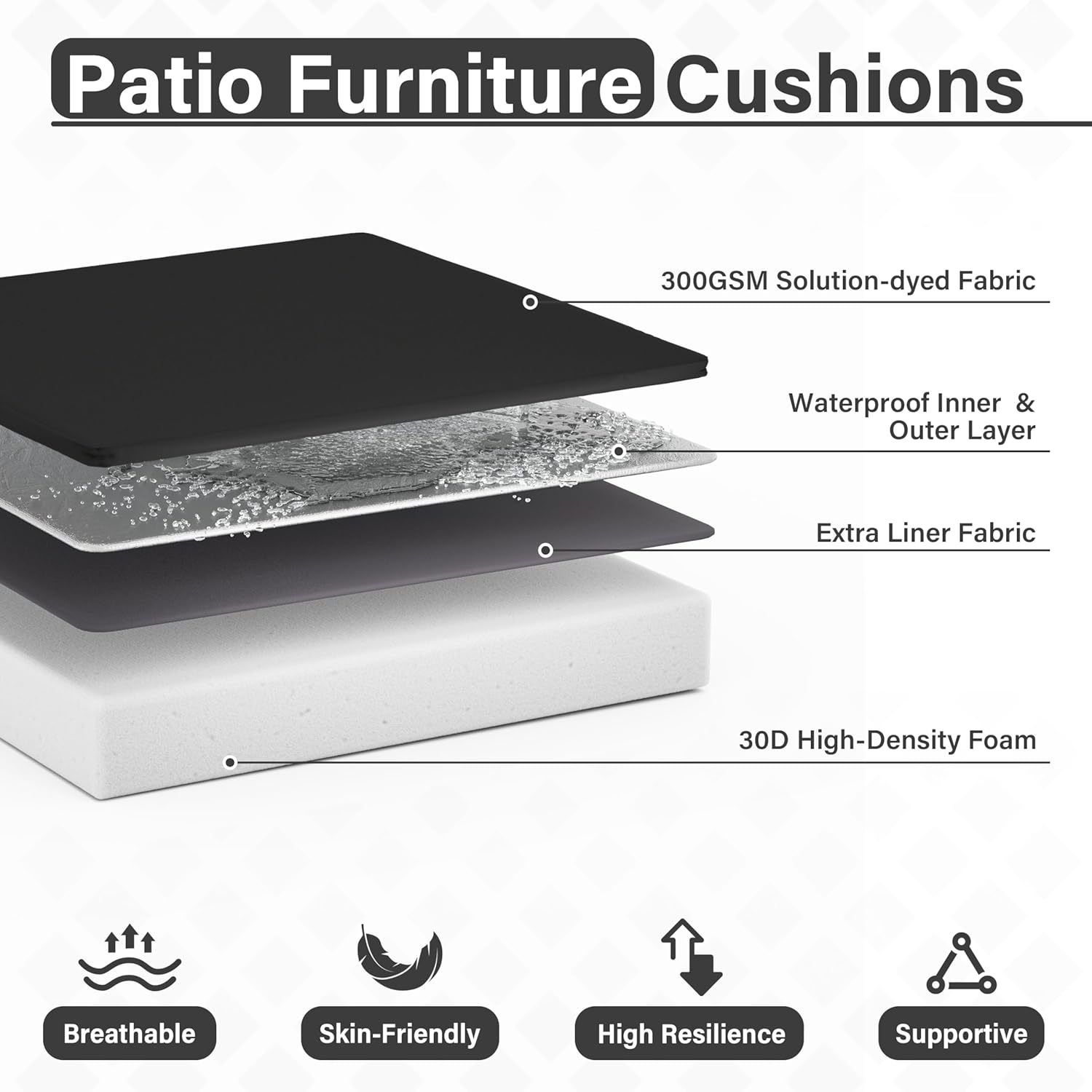 - π WEATHERPROOF - The Patio Furniture Chair Cushion is made of double-layer waterproof coated fabric that is waterproof on all sides, keeping the rain out and keeping the foam dry and tidy. Even in bad weather, it looks brand new with just a little care from you!