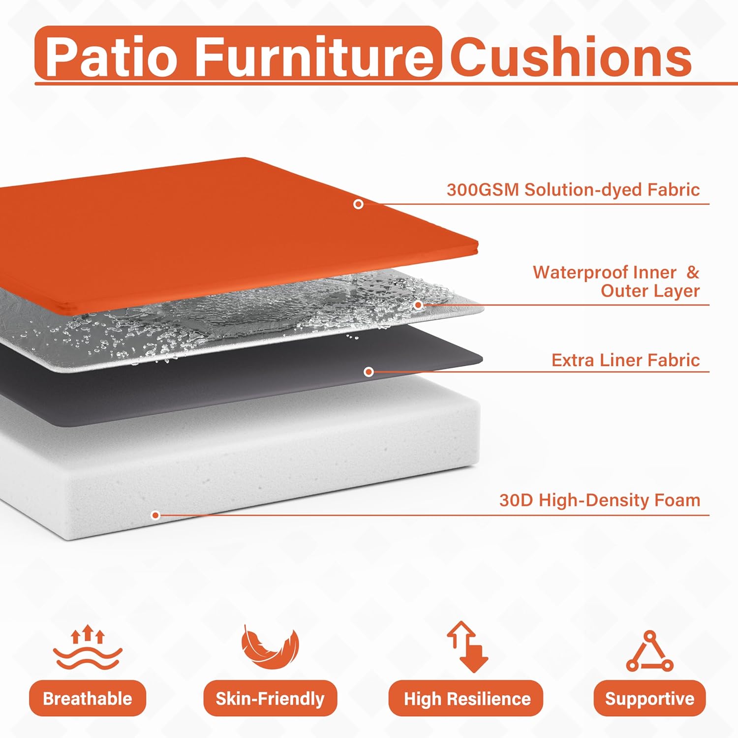 - π WEATHERPROOF - The Patio Furniture Chair Cushion is made of double-layer waterproof coated fabric that is waterproof on all sides, keeping the rain out and keeping the foam dry and tidy. Even in bad weather, it looks brand new with just a little care from you!