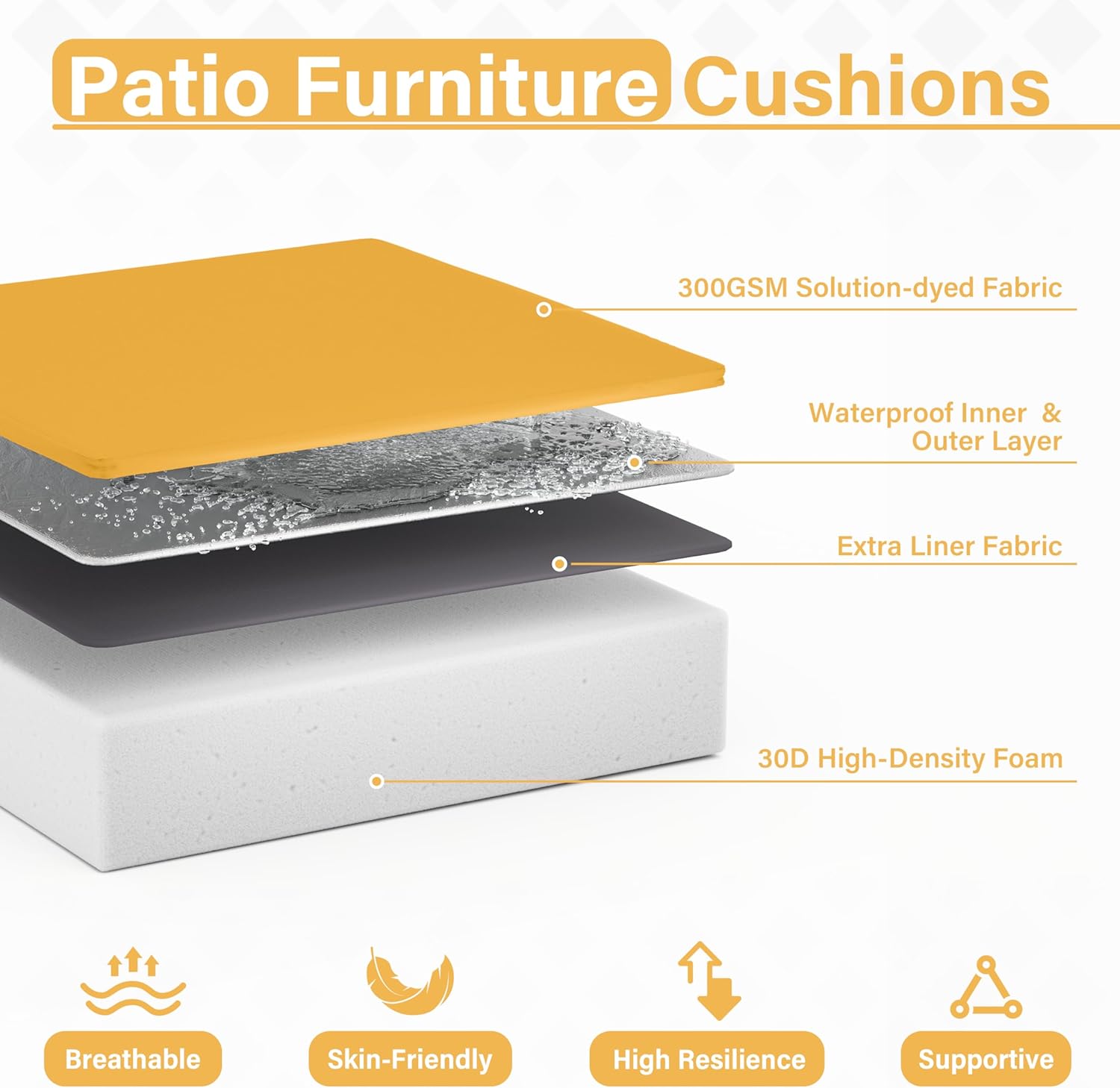 - π WEATHERPROOF - The Patio Furniture Chair Cushion is made of double-layer waterproof coated fabric that is waterproof on all sides, keeping the rain out and keeping the foam dry and tidy. Even in bad weather, it looks brand new with just a little care from you!