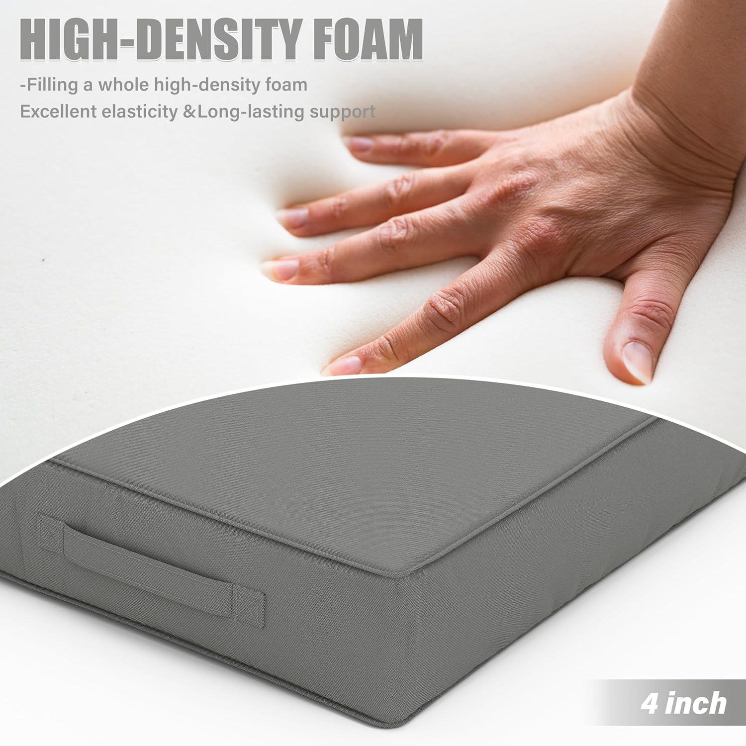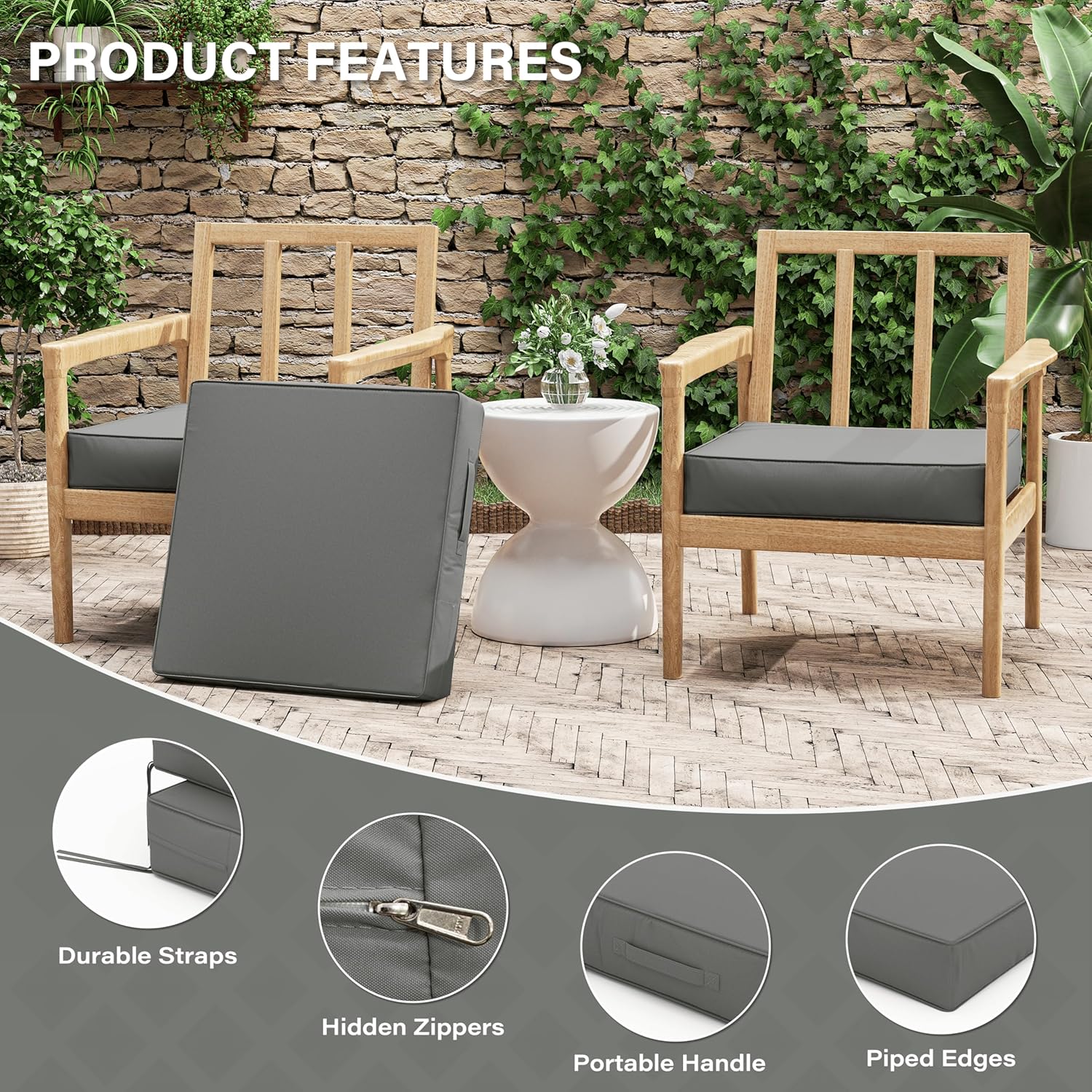 Patio Chair Cushions 22 X 22 X 4 Inch Waterproof Outdoor Seat Cushions for Patio Furniture, Outdoor Sofa Couch Pads with Ties & Handle, Set of 2, Light Grey