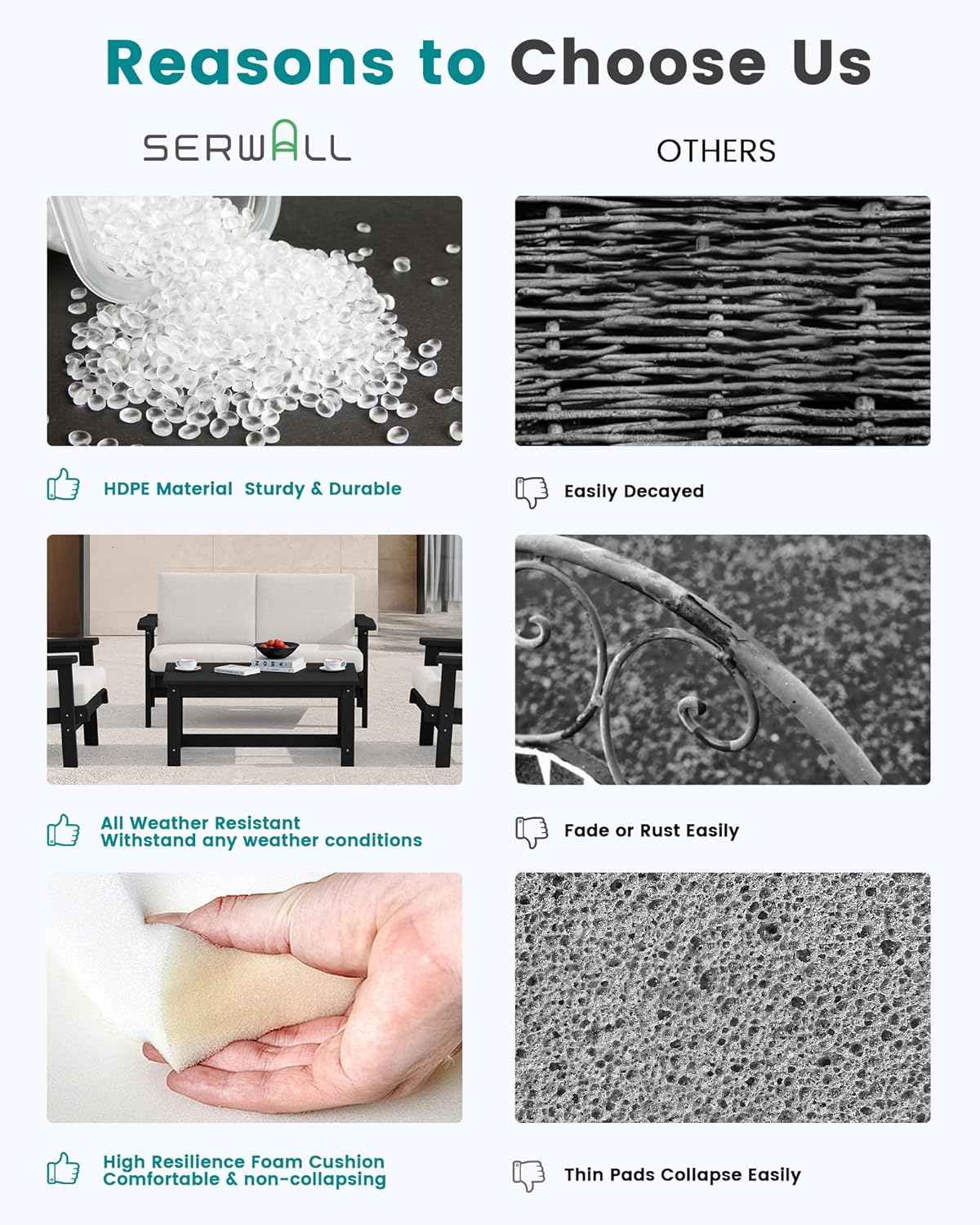 - After-sales Support: We want our customers to be 100% satisfied with serwall outdoor furniture set - you can always come to us for any product questions and product care, we are committed to your satisfaction.