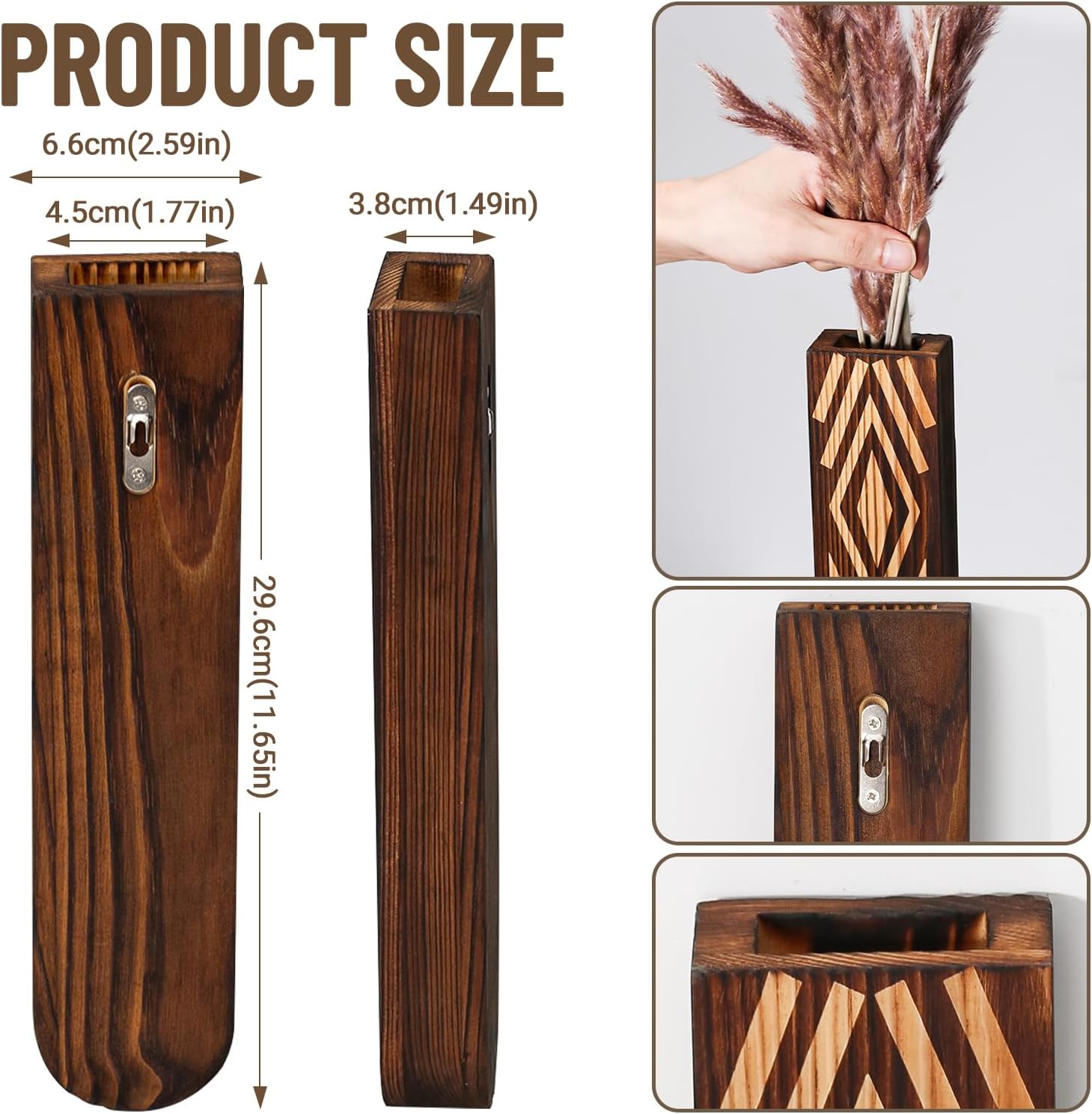 - The Sawoake Wooden Wall Vase is not only aesthetically pleasing, but also practical. Thanks to its durable construction, it can effortlessly hold your plants securely in place, ensuring that they stay healthy and thriving. The high-quality craftsmanship ensures that these wooden wall planters will last for years to come, offering endless opportunities for creativity and personal expression.