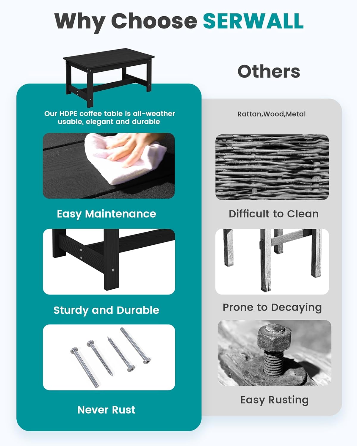 - After-sales Support: We want our customers to be 100% satisfied with serwall outdoor table - you can always come to us for any product questions and product care, we are committed to your satisfaction