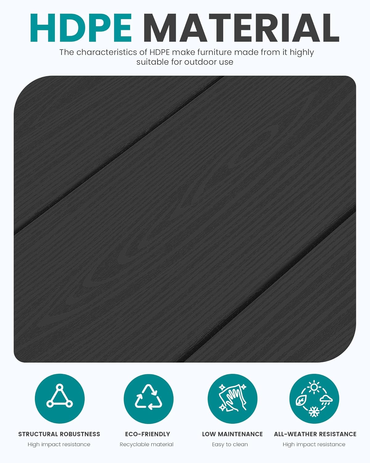 - Premium HDPE Material: Made from all weather HDPE with a wood-grain texture, this table is designed to withstand the elements while adding a stylish touch to your patio or garden