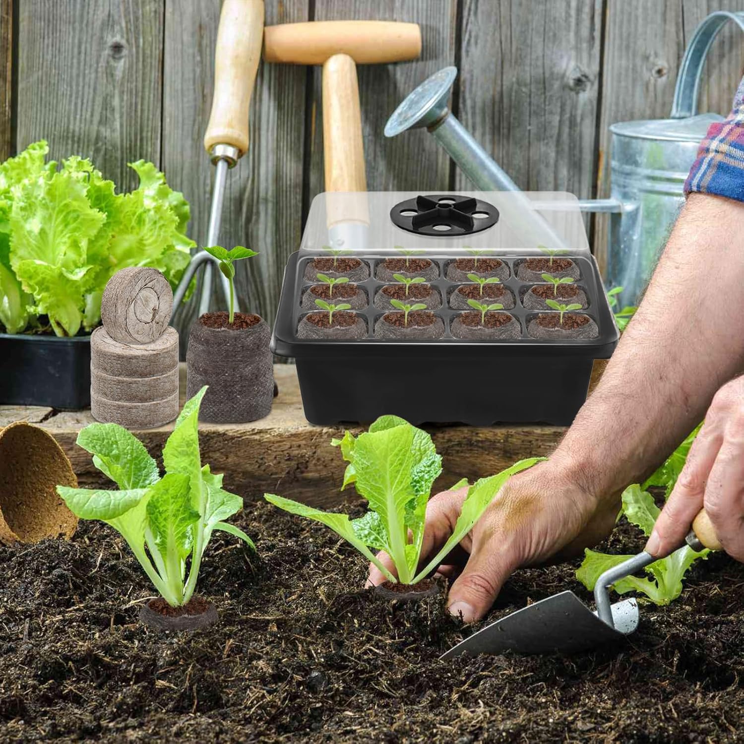 - Color : 8pcs 12cell Black Seed Trays+100 Peat Pellets