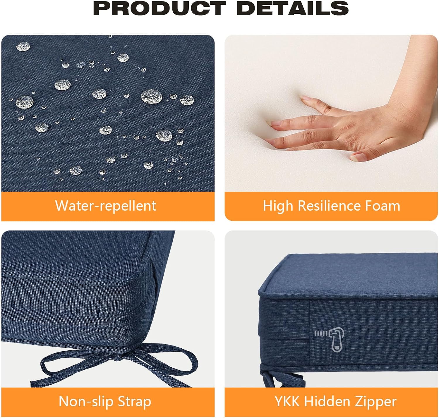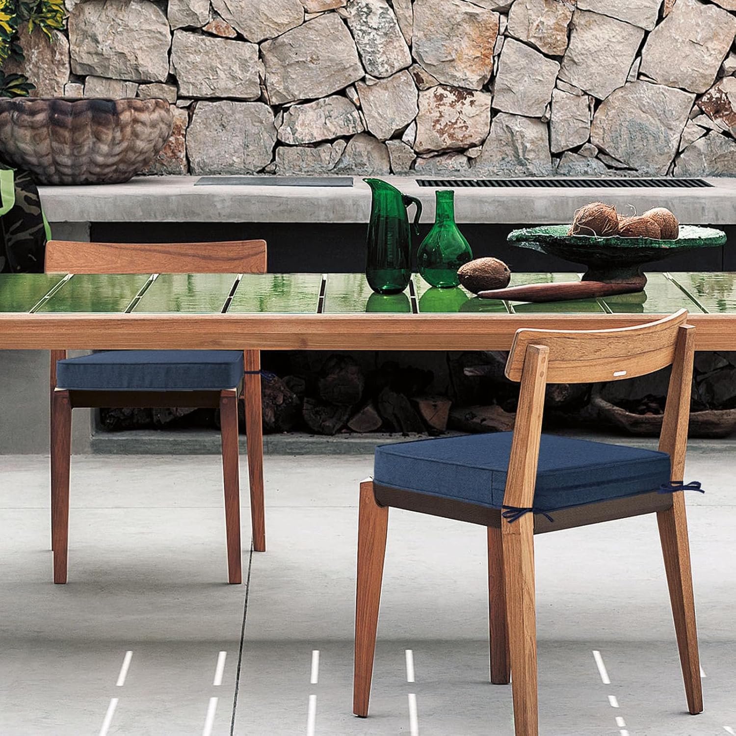 Sunbrella Square Corner Seat Cushions, 19" x 19" x 3", Set of 4, Indoor Outdoor Water Repellent Universal Chair Pads with Ties for Patio Furniture, Garden Dining Chairs, Specrtum Indigo