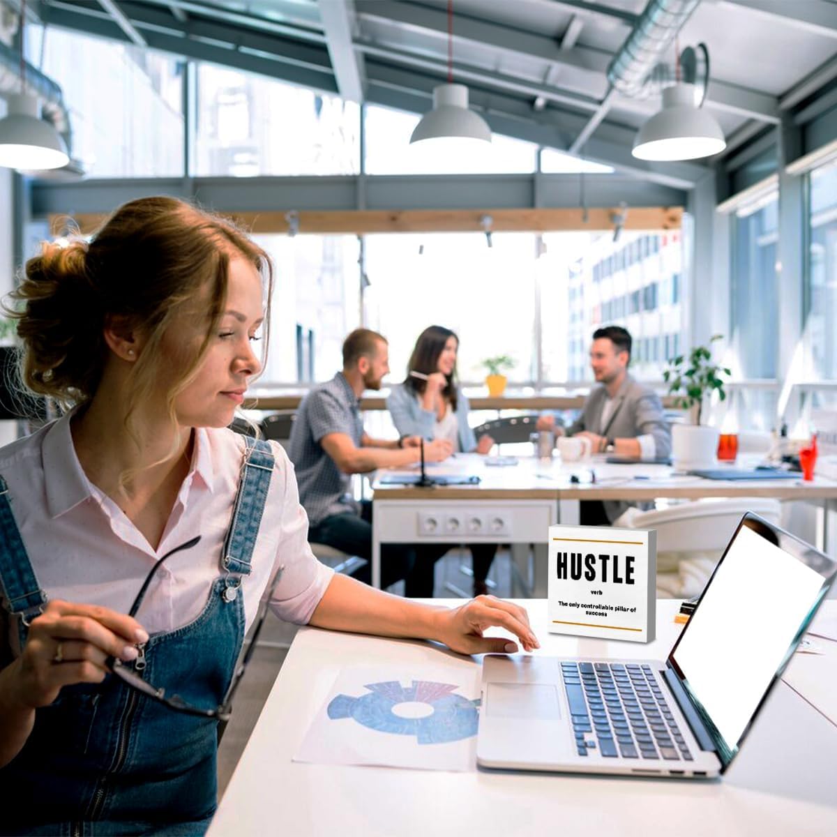 Hustle Definition Entrepreneur White Wooden Box Sign, Inspirational Office Decor Decorative Table Shelf Desk Decor, Rustic Workplace Farmhouse Home Counter Decor Office Decorations Desk Accessories