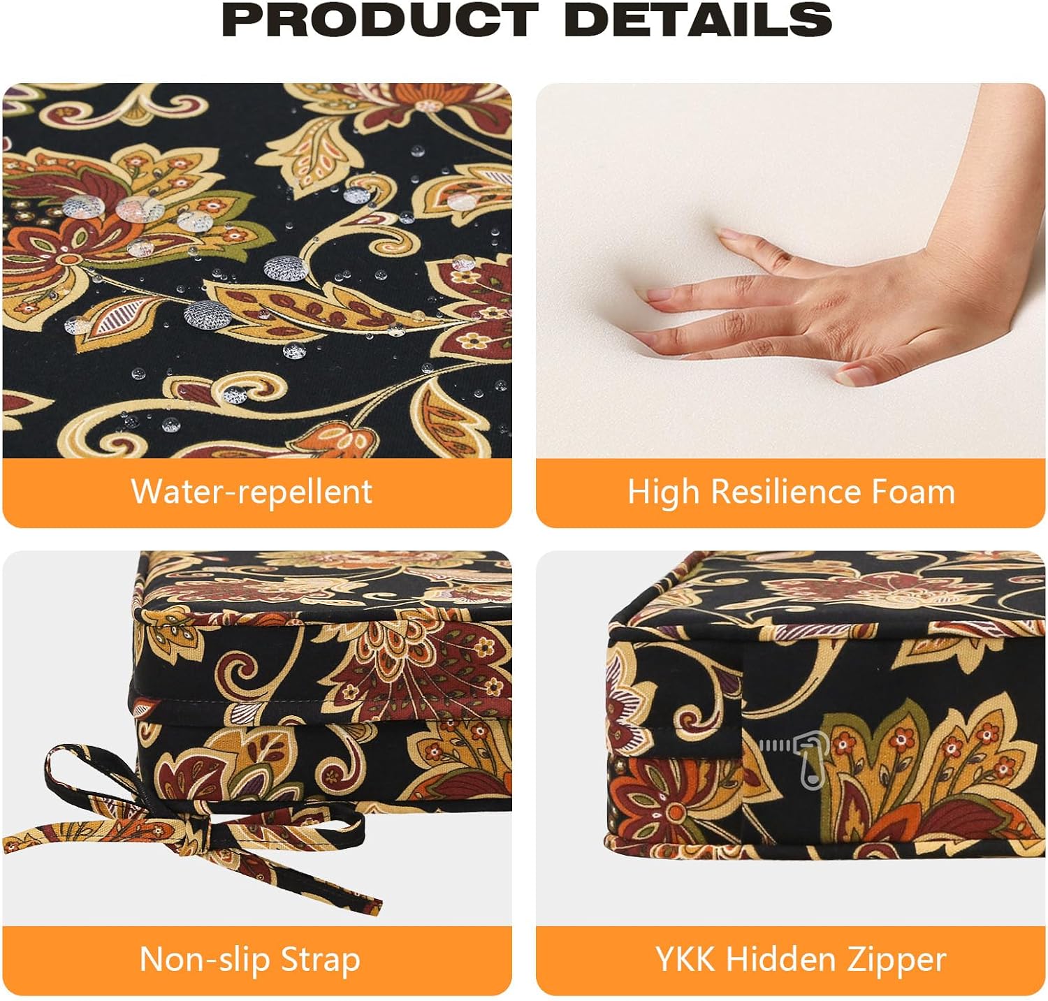 - 【Non-slip Ties and Piped Edge】 The two non-slip ties can be fastened to your furniture to keep the outdoor cushion in place. Some seams are finished with piping, which reinforces the edges and makes the outdoor furniture cushion more stylish.