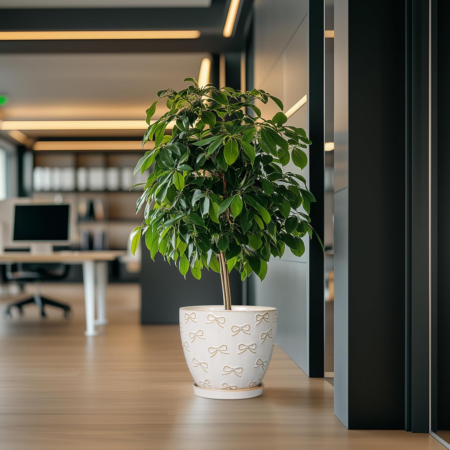 - Stylish Appearance: Our ceramic planter pot has a white main colour, a beautiful embossed bow tie pattern on the surface, elegant appearance making it ideal for home decor, garden decor and office decor