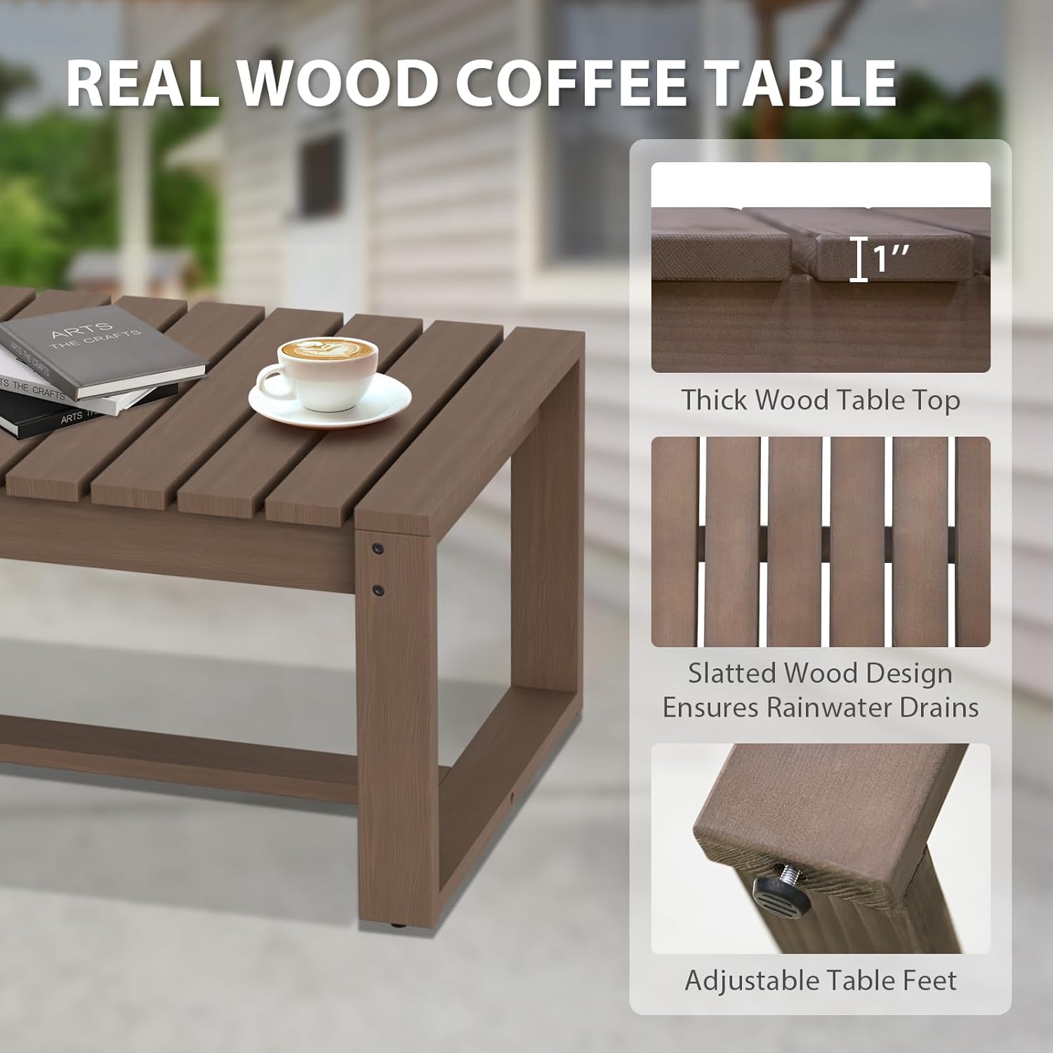 - PREMIUM NATURAL CEDAR WOOD: Crafted with natural cedar wood, this patio furniture set is the perfect blend of strength and style, adding a rustic charm to any outdoor setting. Cedar’s durability makes it resistant to rot, decay, and insect damage, ensuring long-lasting resilience and beauty.