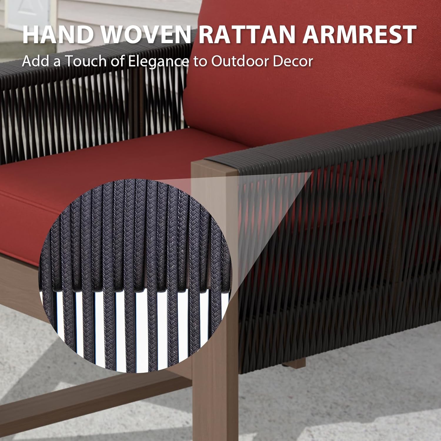 EAGLE PEAK Natural Wood Outdoor Patio Furniture, Cedar Furniture, Conversation Set, Outdoor Seating for Deck Patio Porch, Sofa 4 Chairs Coffee Table & Side Table, 7 Pieces, Brown/Red