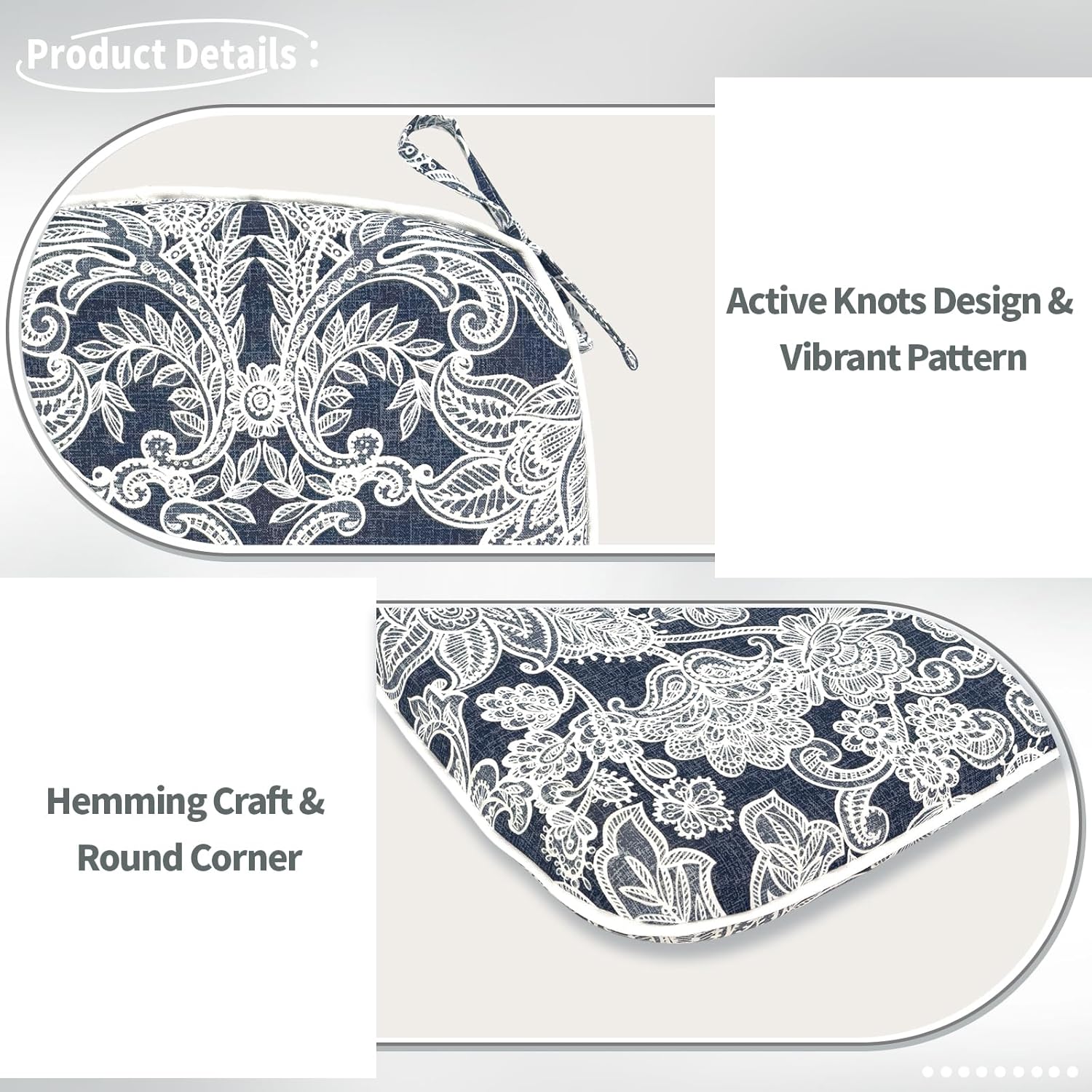 Indoor/Outdoor Chair Cushions 16x17 Inch, Patio Chair Cushions with Ties, All Weather Seat Cushions for Patio Furniture Home Garden Chair Use, Set of 4,Damask Lapis