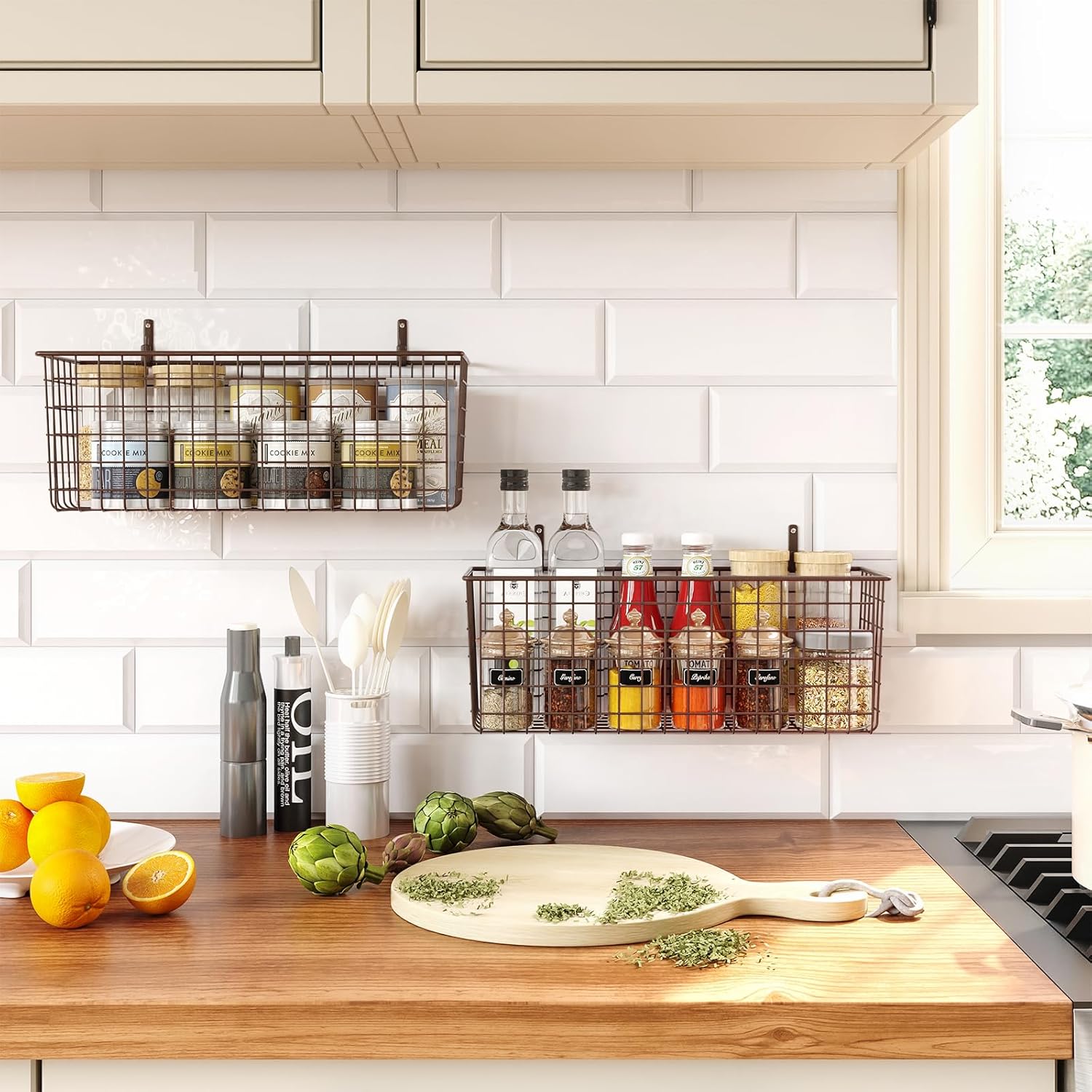 - Neat and Space Saving Organizer: They are ideal wall mounted storage baskets for home decor clearance, pantry, kitchen, cabinet, door, bathroom, bedroom, laundry,, closet, craft rooms, garage, office , farmhouse and more. You can also put it on sink, counter and other table tops. Make your storage double as décor for a streamlined and organized home.