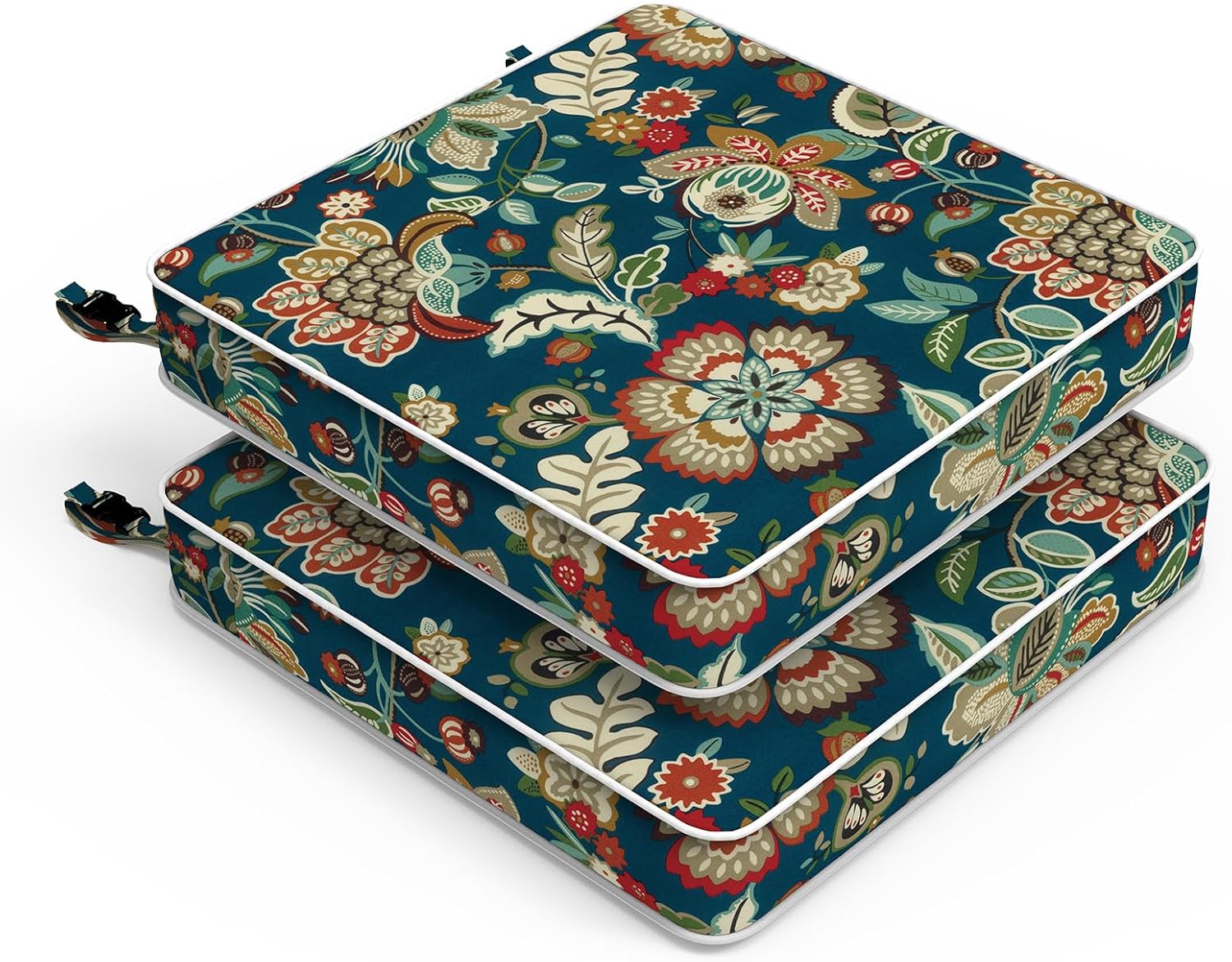 LVTXIII Patio Chair Cushions 22"x22"x3", Water-Repellent Outdoor Seat Cushions for Patio Furniture, Square Chair Pads with Ties for Home Garden Decoration, Set of 2, Peacock Blue