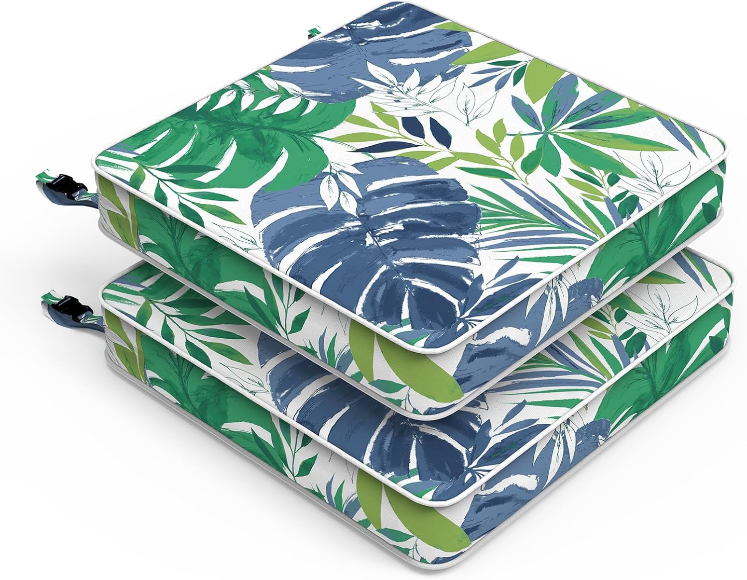 LVTXIII Patio Chair Cushions 19"x19"x3", Water-Repellent Outdoor Seat Cushions for Patio Furniture, Square Chair Pads with Ties for Home Garden Decoration, Set of 2, Islamorada Blue Green