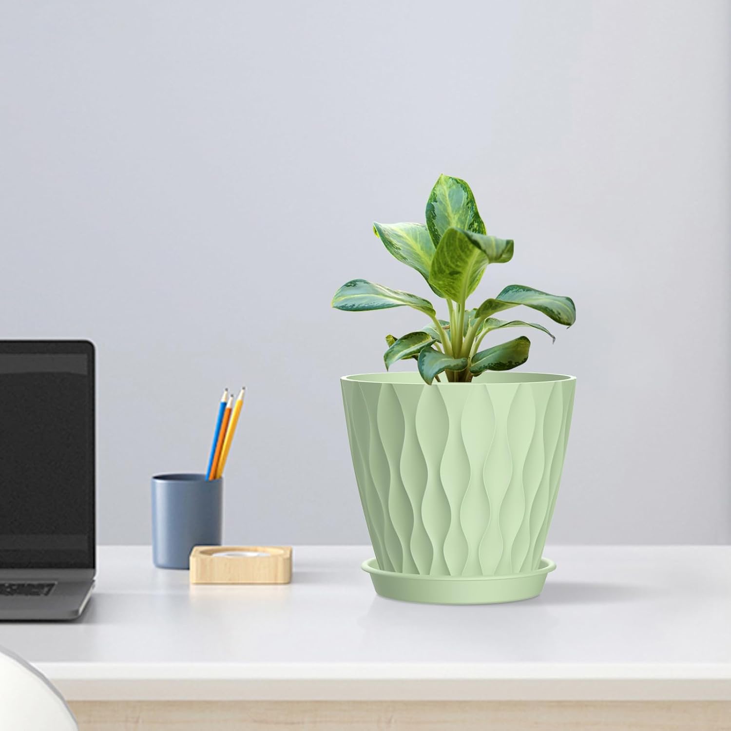 - 【Stylish 3D Wave Design】These water ripples plant pots set of 5 feature a modern 3D wave design, adding a touch of elegance to any space. Whether for starting seedlings, transplanting, or decorative your home and office, these plastic planter pots set are a good choice for any gardening enthusiast