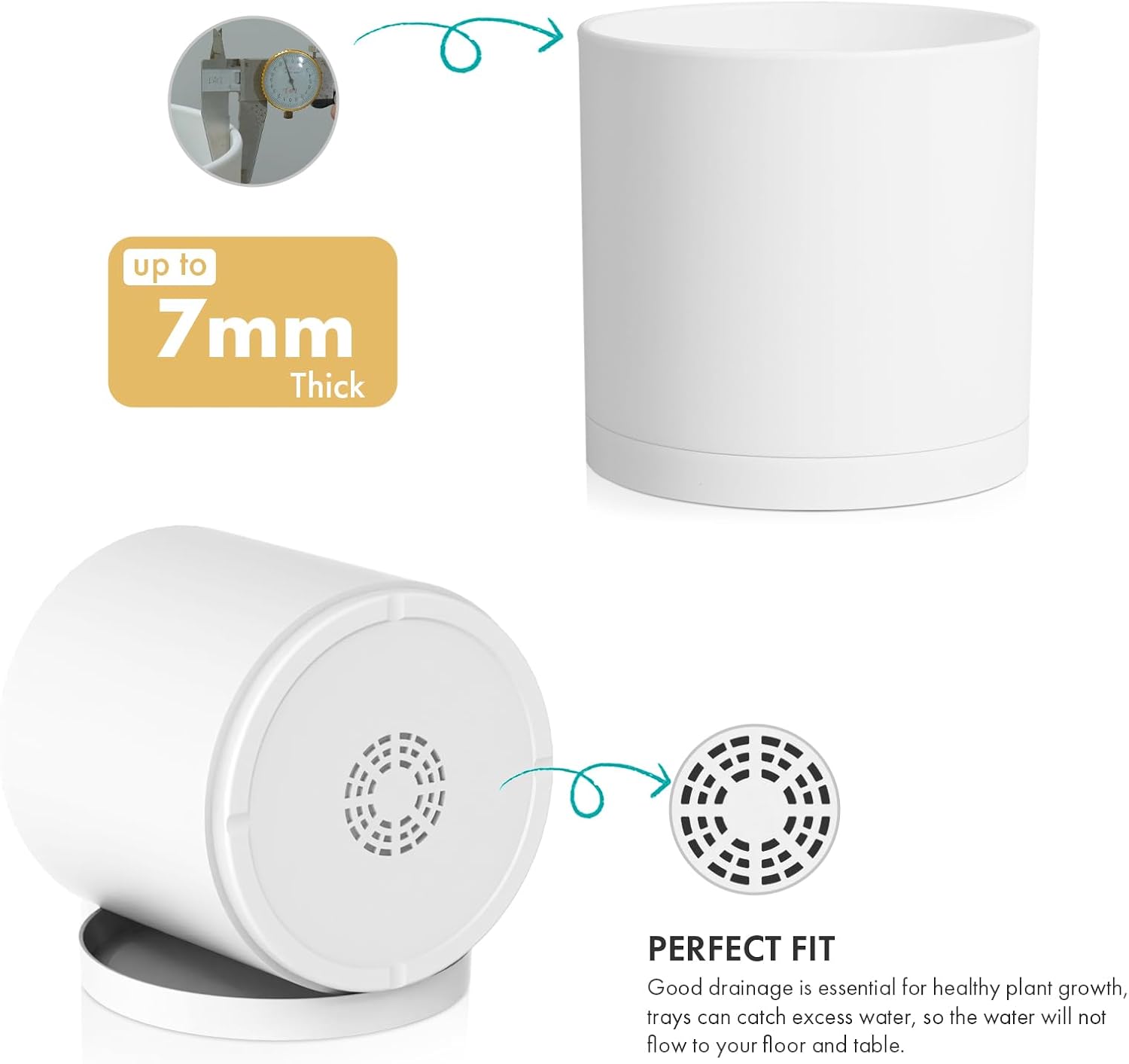 - 【Drainage Holes & Trays】 Excess water flows out of the drainage holes and plant pot saucers collect the overflow to prevent overwatering and flooding, this design allows the plastic planter to protect the plants and soil, keep the surrounding area dry and easy to clean