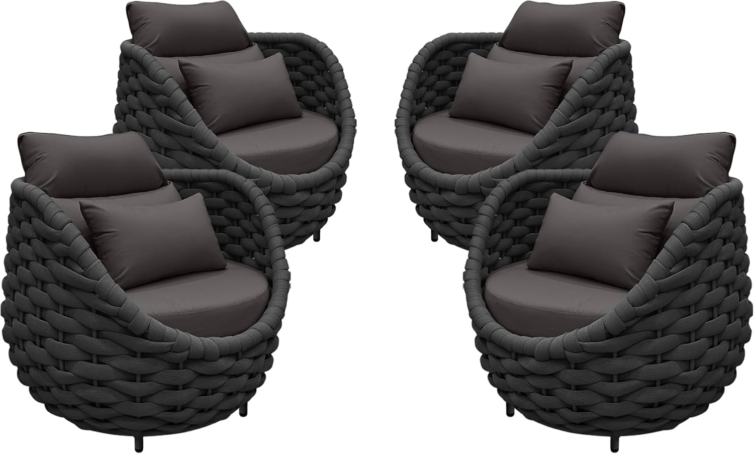 TWT 4 Pieces Patio Sofas All-Weather Teslin Rope Balcony Furniture with Cushions & Pillows, Patio Couch Outdoor Patio Furniture Set for Indoor, Balcony, Backyard, Poolside, Dark Grey