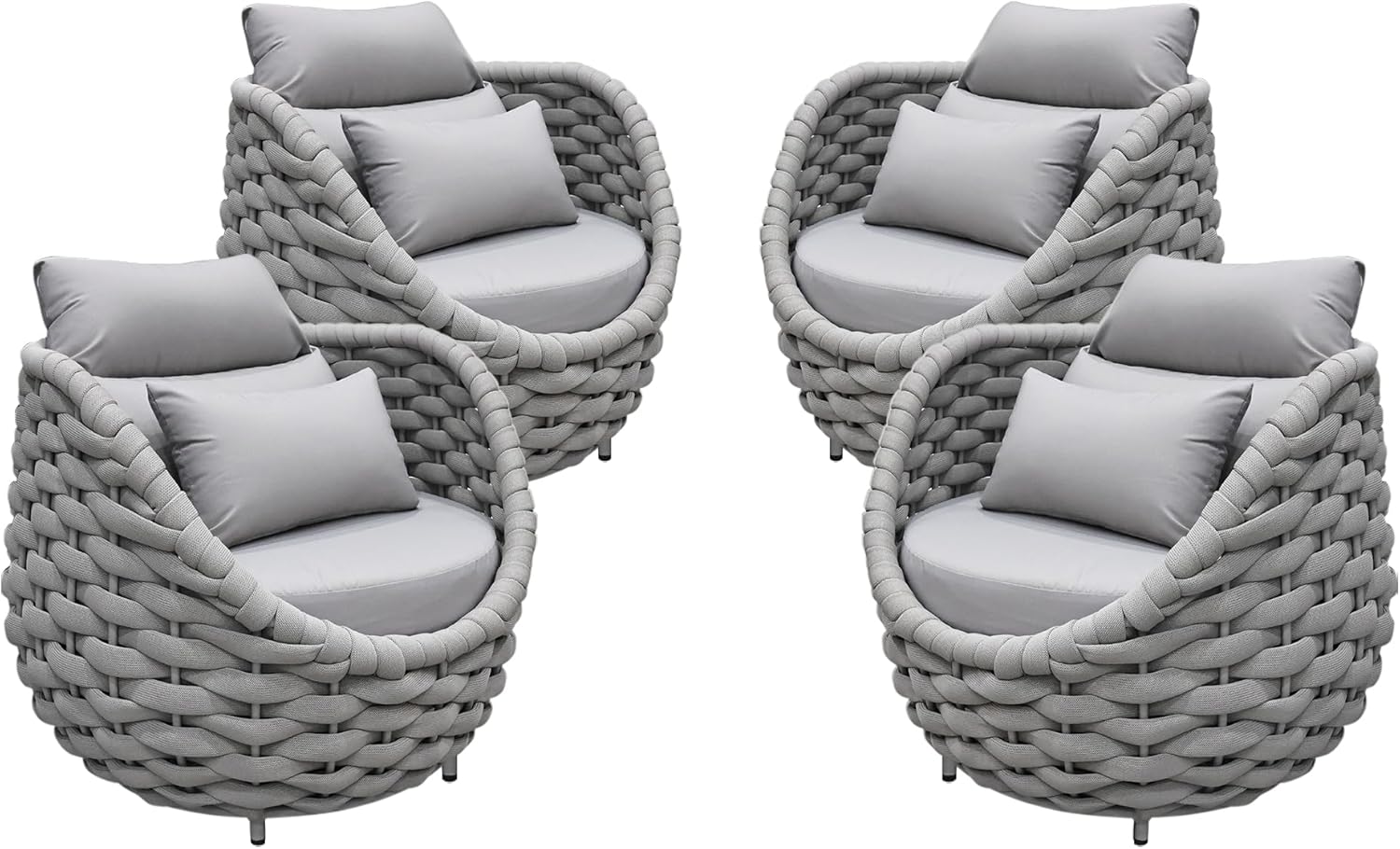 TWT 4 Pieces Patio Sofas, All-Weather Teslin Rope Balcony Furniture with Cushions & Pillows, Patio Couch Outdoor Patio Furniture Set for Indoor, Balcony, Backyard, Deck, Poolside, Grey