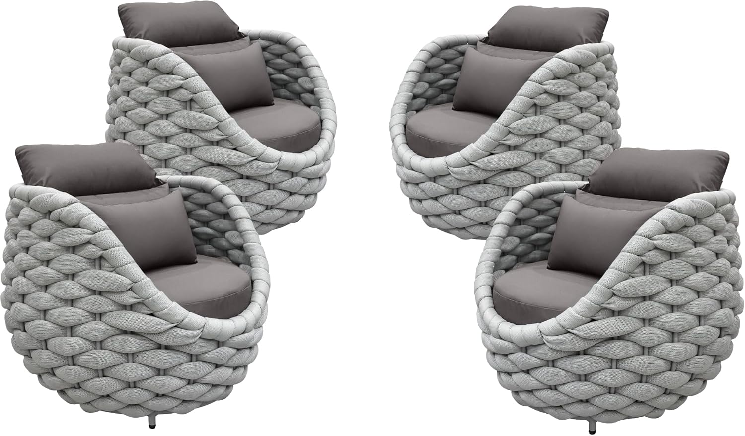 TWT 4 Pieces Patio Sofas All-Weather Teslin Rope Balcony Furniture with Dark Grey Cushions & Pillows, Patio Couch Outdoor Patio Furniture Set for Indoor, Balcony, Backyard, Deck, Poolside