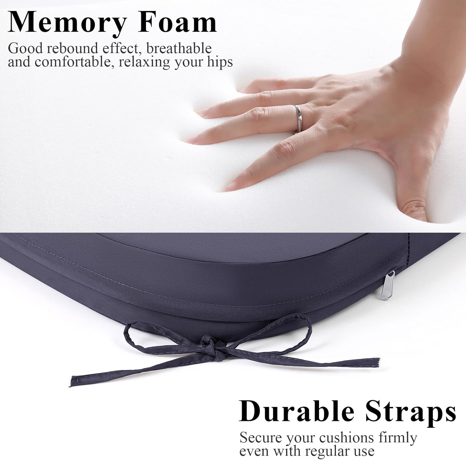 Outdoor Chair Cushions Set of 2, Waterproof Foam Patio Seat Cushions with Ties for Garden Sofa & Dining Furniture, 3-Year Color Fastness, 18x18x3 Inch, Grey