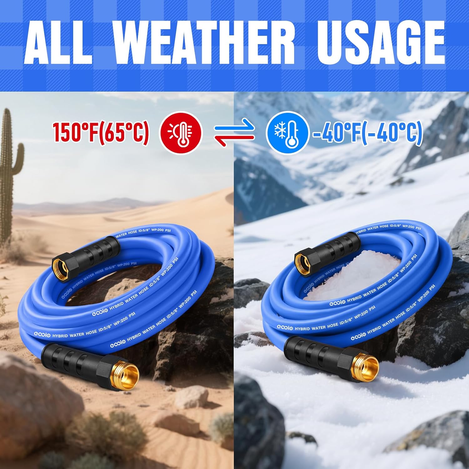 - Kinking Resistant & All Weather Flexibility Hose - No need to worry about kinks when watering, the hybrid material allows the water hose to remain flexible in extreme temperatures, defying heat or cold and remain flexible and kink resistant for prolonging using lifetime.