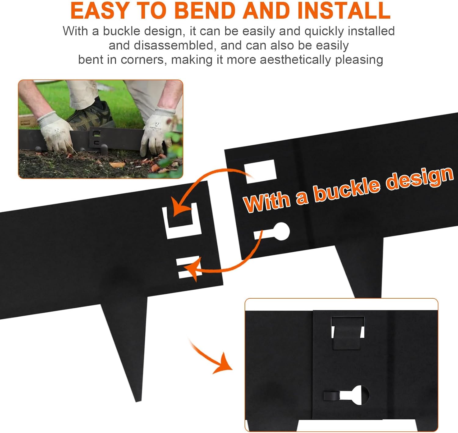 - EASY TO INSTALL - The 42-inch long, 7.9-inch wide steel garden landscape edging is easy to bend and can be easily set to create clear borders that define different areas of your landscape. The steel buckle design allows for quick and easy installation and removal, ensuring a tight connection between sections to avoid loosening. It is easy to install and saves time and effort, providing a hassle-free solution for improving your outdoor environment