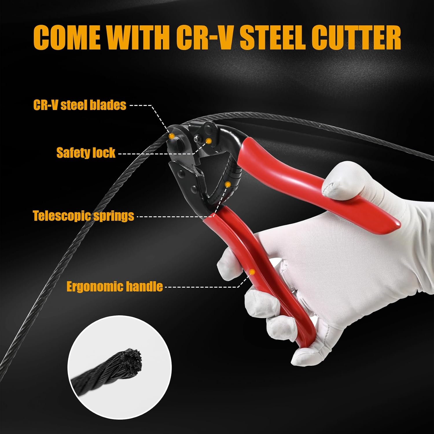 - Easy to store and use: The aircraft cable is equipped with a spool, which is convenient for retracting and releasing the line. The surface of the steel cable is smooth and highly polished. The included cable cutter allows you to easily customize the required length, cutting smoothly without any sharp edges.