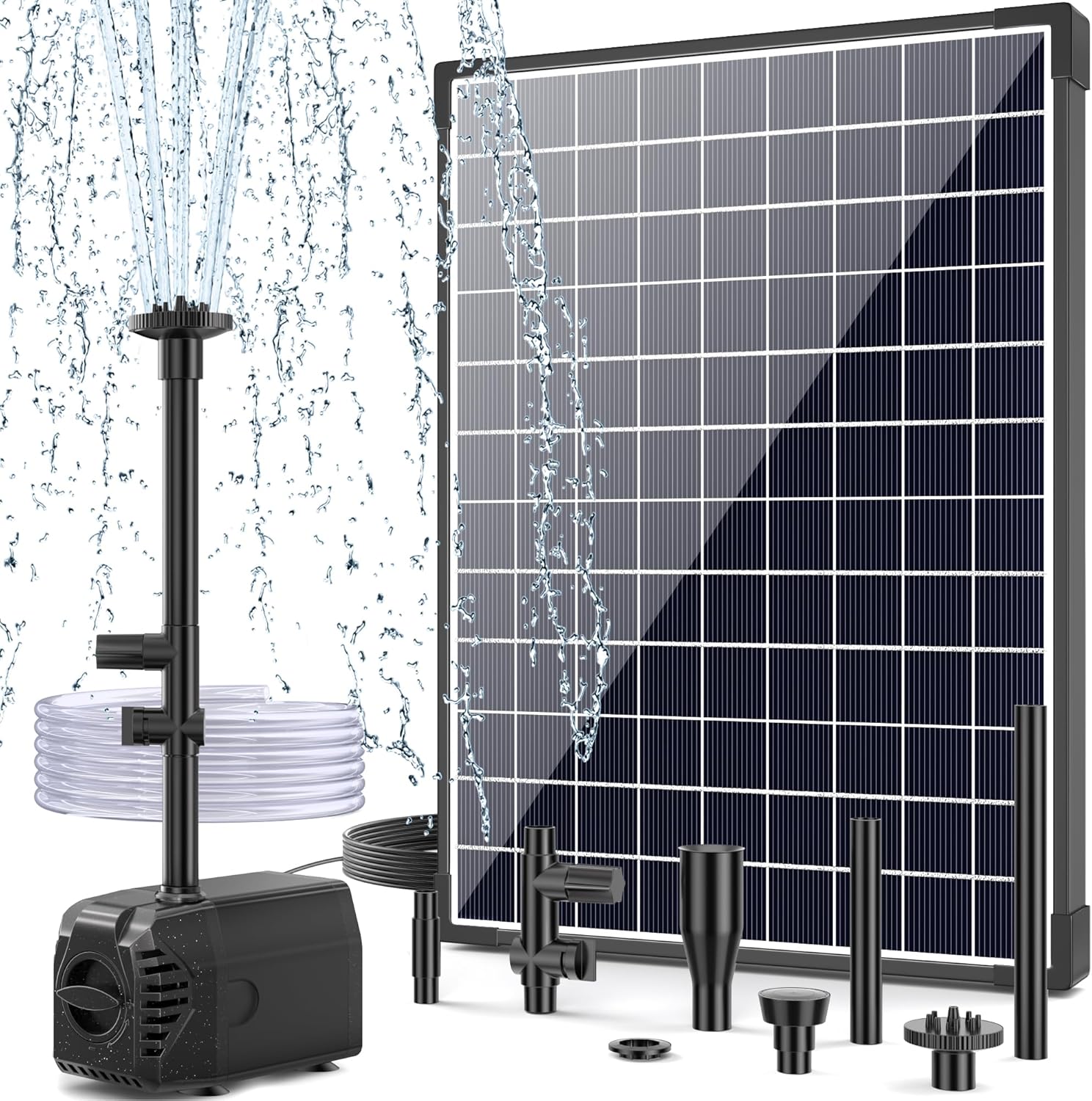 - ⛲【Easy Installation & Wide Application】The solar fountain pump equipped with a 90° angle adjustable mounting bracket, you can install it on the wall or on the ground. The 17ft long cord allow you to find the best place to place solar panel. Perfect for pond, wildlife decoration, fish tank, Waterfall, Hydroponics and water circulation for oxygen etc.