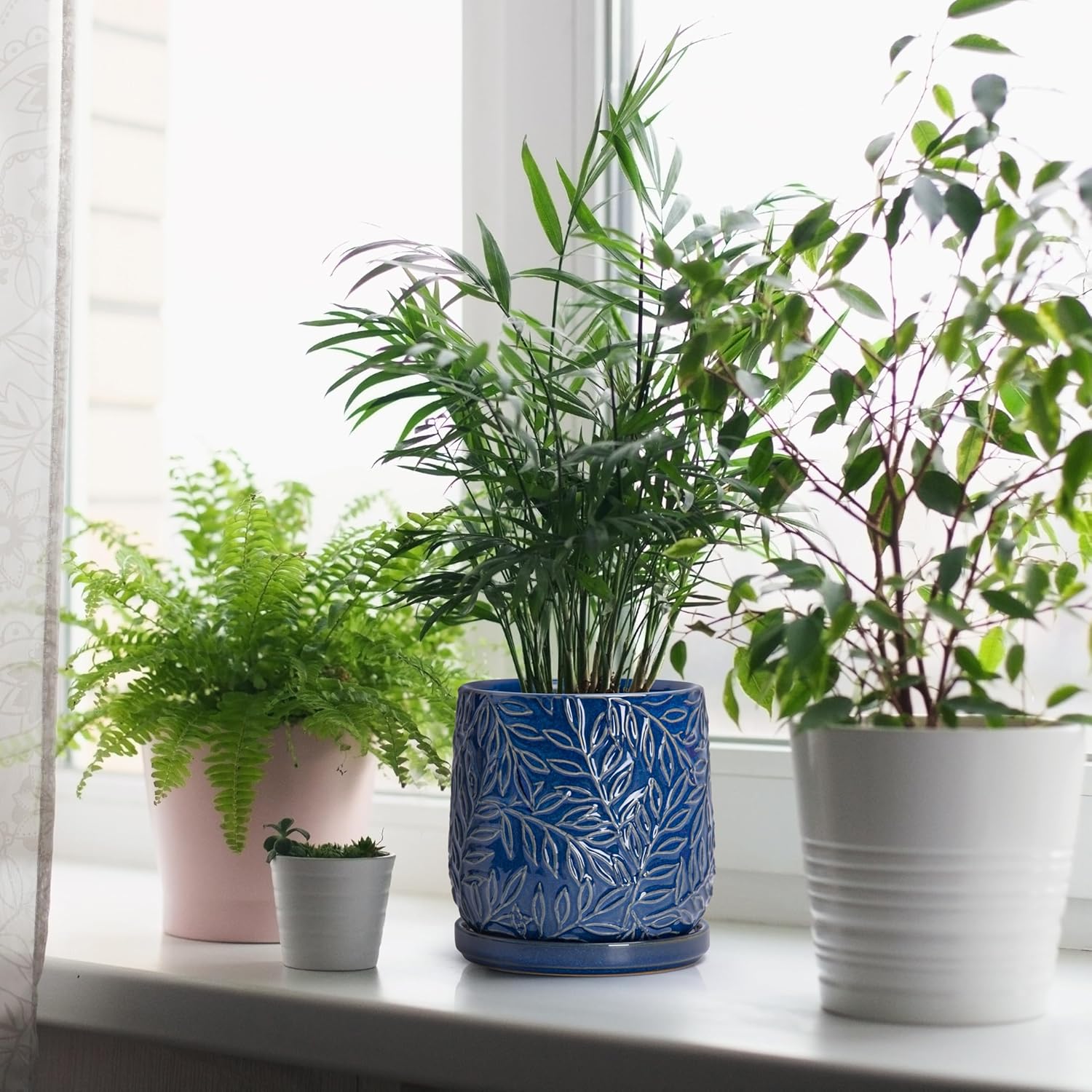 - Drainage Hole and Saucer: Each pot comes with pre-drilled drainage hole and matching ceramic tray to drain excess water.