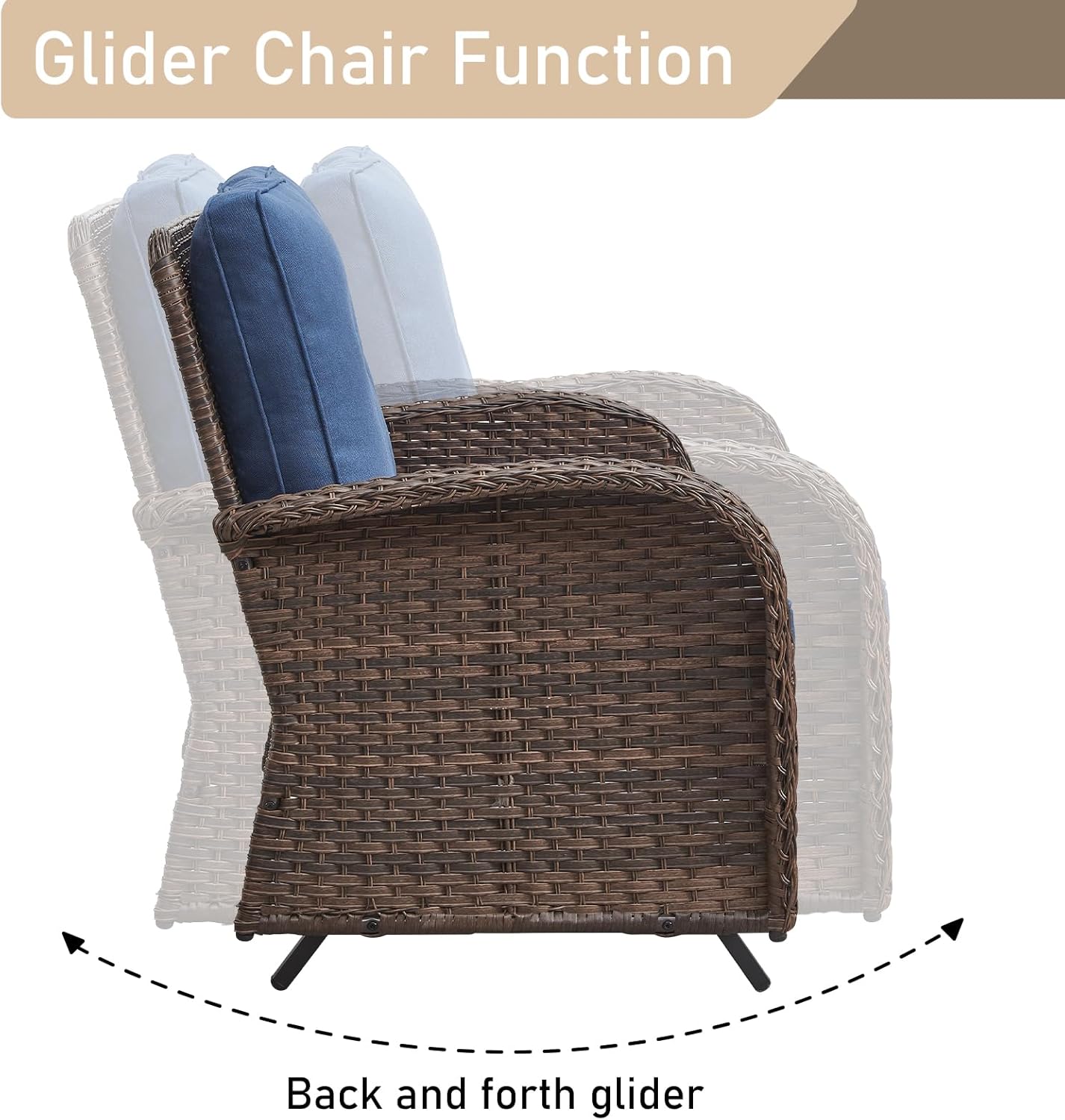 HUMMUH 7-Piece Patio Furniture Set with Fire Pit,Wicker Patio Glider Loveseat Outdoor Swivel Rocker Chairs with Ottomans for Backyard,Poolside,Deck
