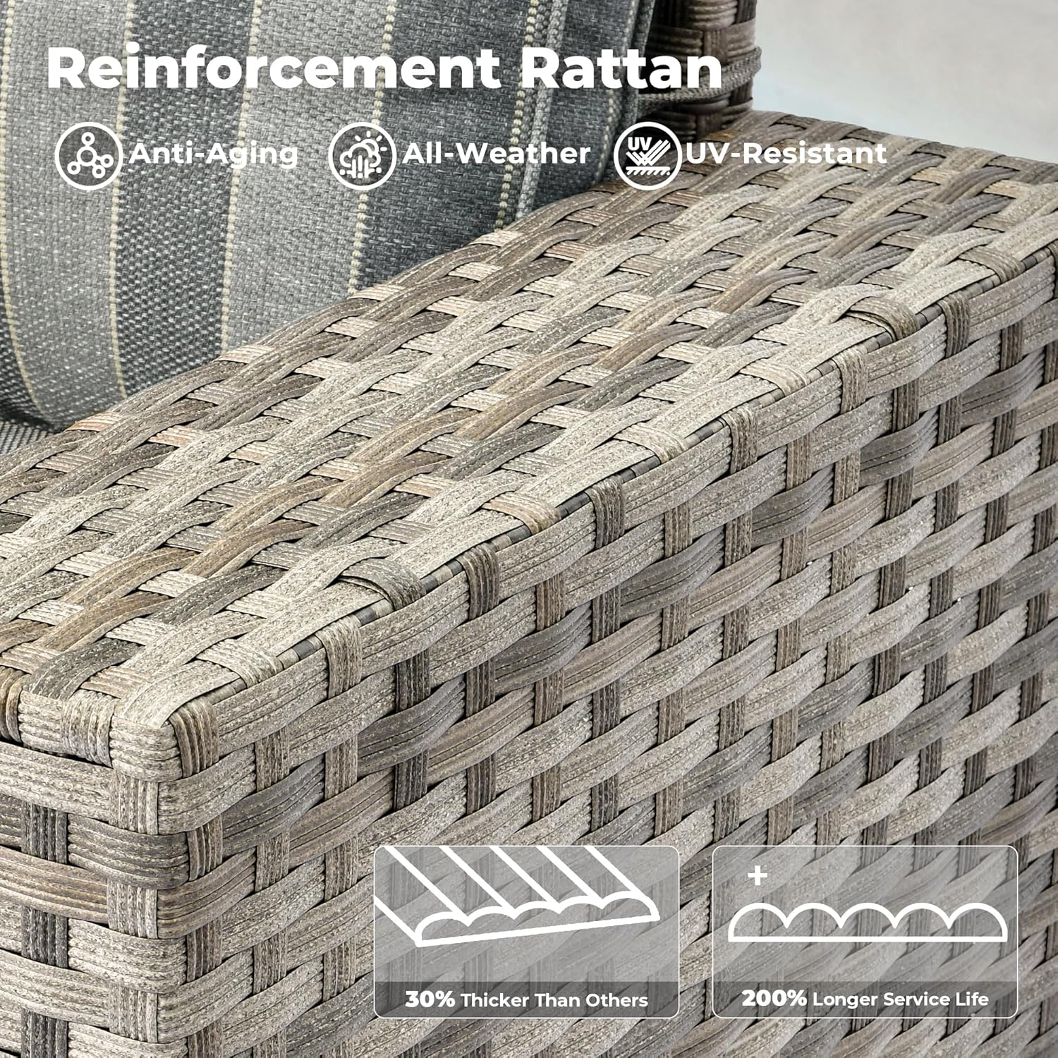 - All-weather Wicker Rattan: Our outdoor sofa sets have very durable wicker rattan for all-weather use and a natural texture with good coloring. The high-quality patio seating made of powder coated steel frame ensures good strength and stability.