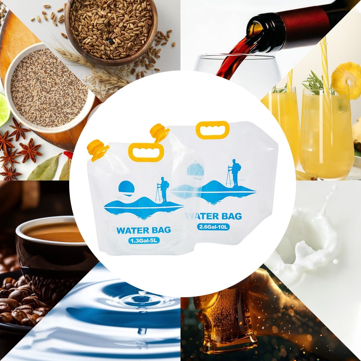 Collapsible Emergency Water Container Bag,WaterStorageCube,Flat Folding,BPA Free Food Grade,Clear Plastic Storage Jug for Camping Hiking Backpack,No-Leak Freezable,Water Bottle 2.6 Gallon/8pcs