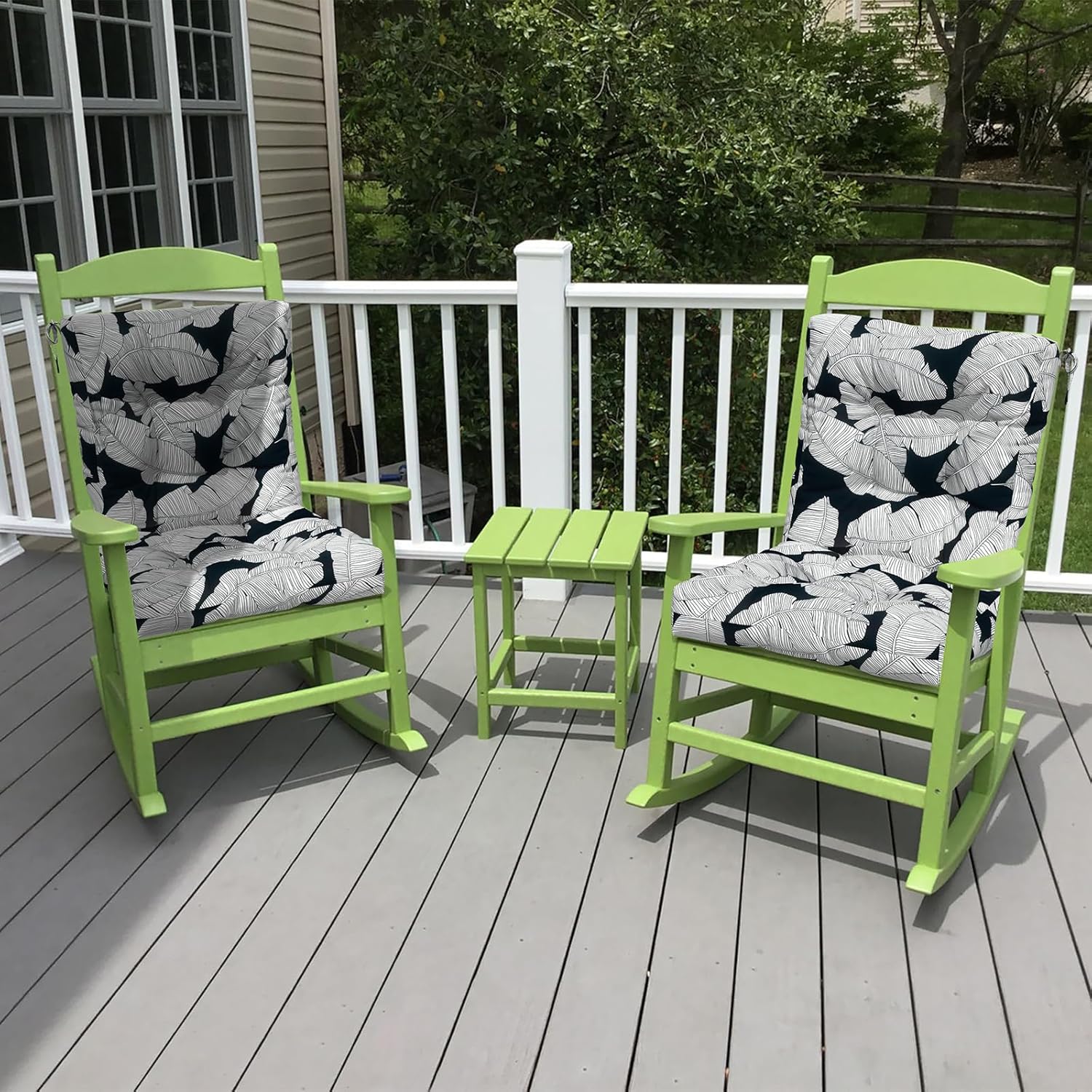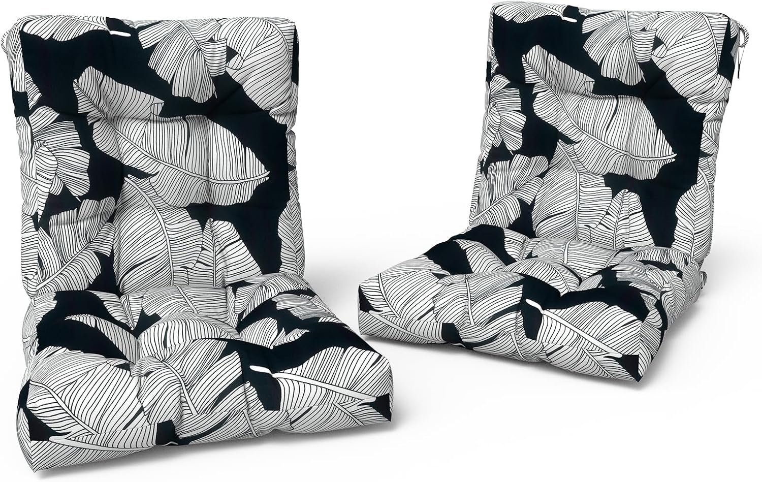 LVTXIII Outdoor Tufted Seat Cushions, Solid Seat and Back Chair Cushion with Ties, Patio Replacement Rocking Chair Cushion for Outdoor Furniture Use, 21 W x 21D, 2 Pack, Black Lush Leaf Jungle