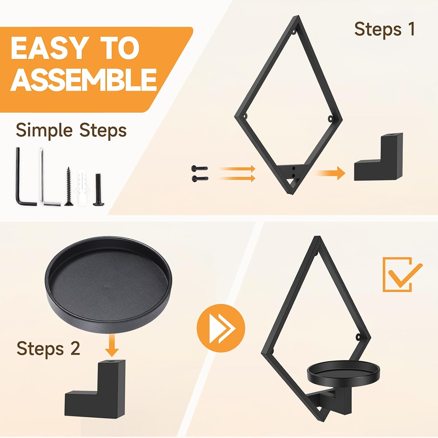 - Modern Design: This wall plant holder features a circular tray with a diamond-shaped frame design. It can hold one flower pot, with a maximum pot size of up to 5.7 inches. The tray has raised edges on the base to prevent the pot from falling. The indoor wall planter is perfect for plant enthusiasts and adds a natural touch to your bedroom, living room, or window