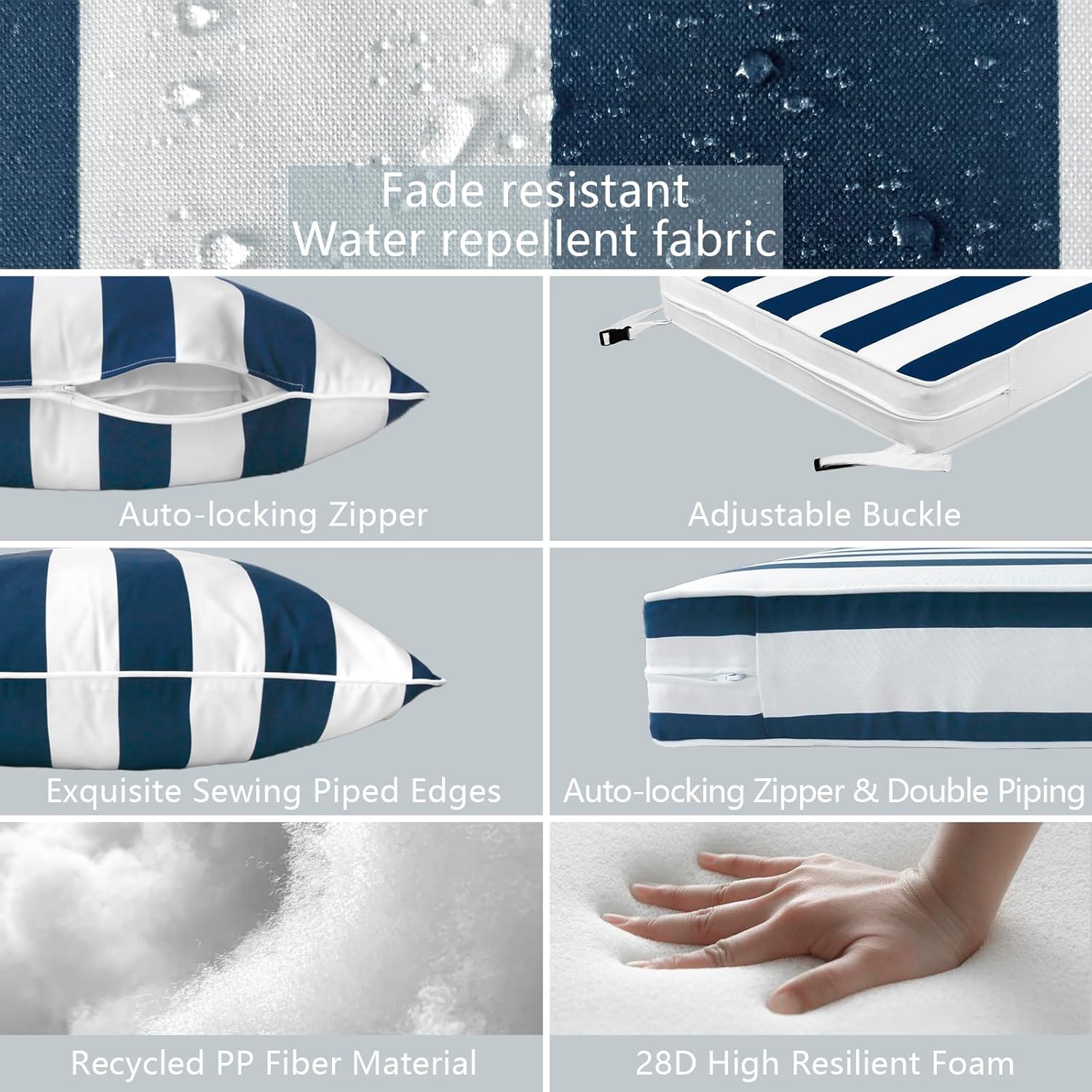 - ⭐Material: Made of 100% durable polyester fabric and soft filling material. It’s water repellent and fade-resistant. Won’t fading under the direct sunlight over 500 hours. Cushions are filled with 28D high resilient foama, overstuffed construction for enhanced comfort and longevity.
