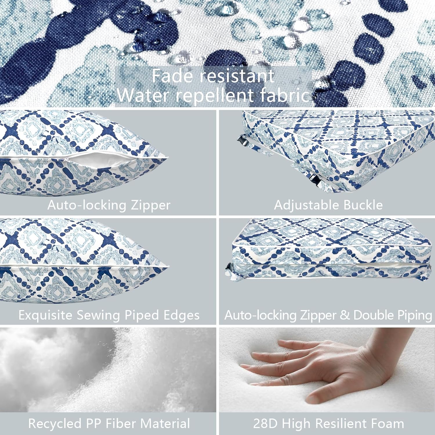 LVTXIII Outdoor Deep Seat Cushion Patio Seat and Back Cushion Set Seasonal Chair Cushion with Removable Cover and Adjustable Buckle for Home and Garden, 24"x24"x4", Boho Geometry Blue