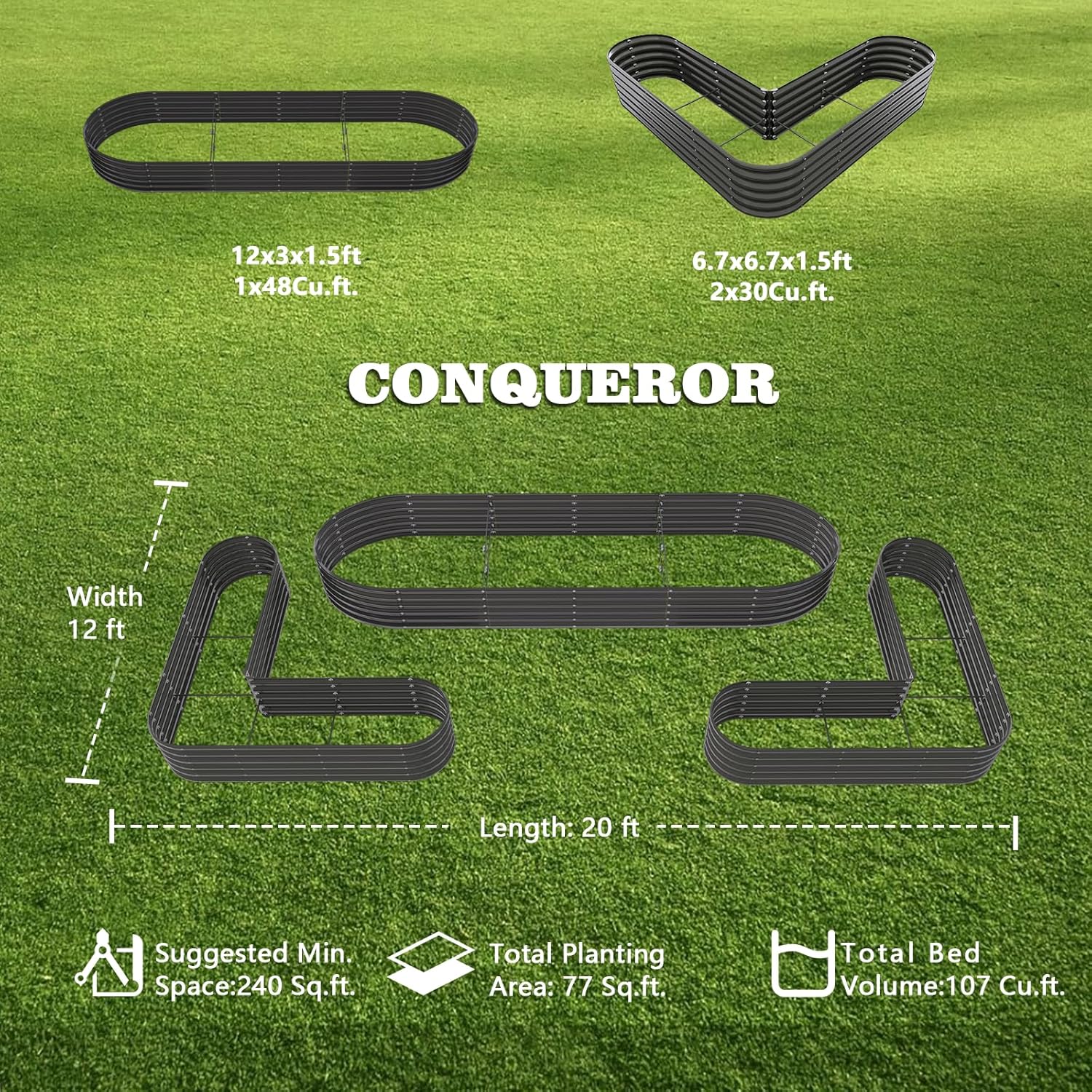 - π Longer Lifespan: Made of 22-gauge 0.8mm thickness corrugated galvanized steel with multi-layer eco-friendly powder coatings. The heavy-duty planter box is strong enough to hold soil for decades.