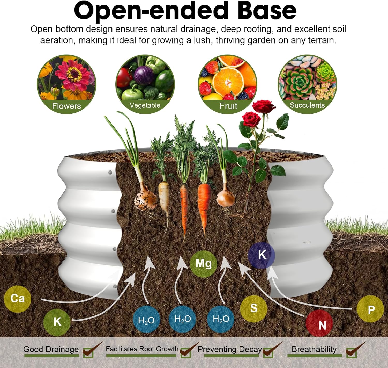 - 【Improved Soil Quality】The open bottom provides ample space for the plant's roots to develop and promotes healthy root growth. This not only helps the plants absorb more nutrients, but also improves drainage, avoiding water accumulation at the bottom, enhances soil quality, creates an ideal growing environment.